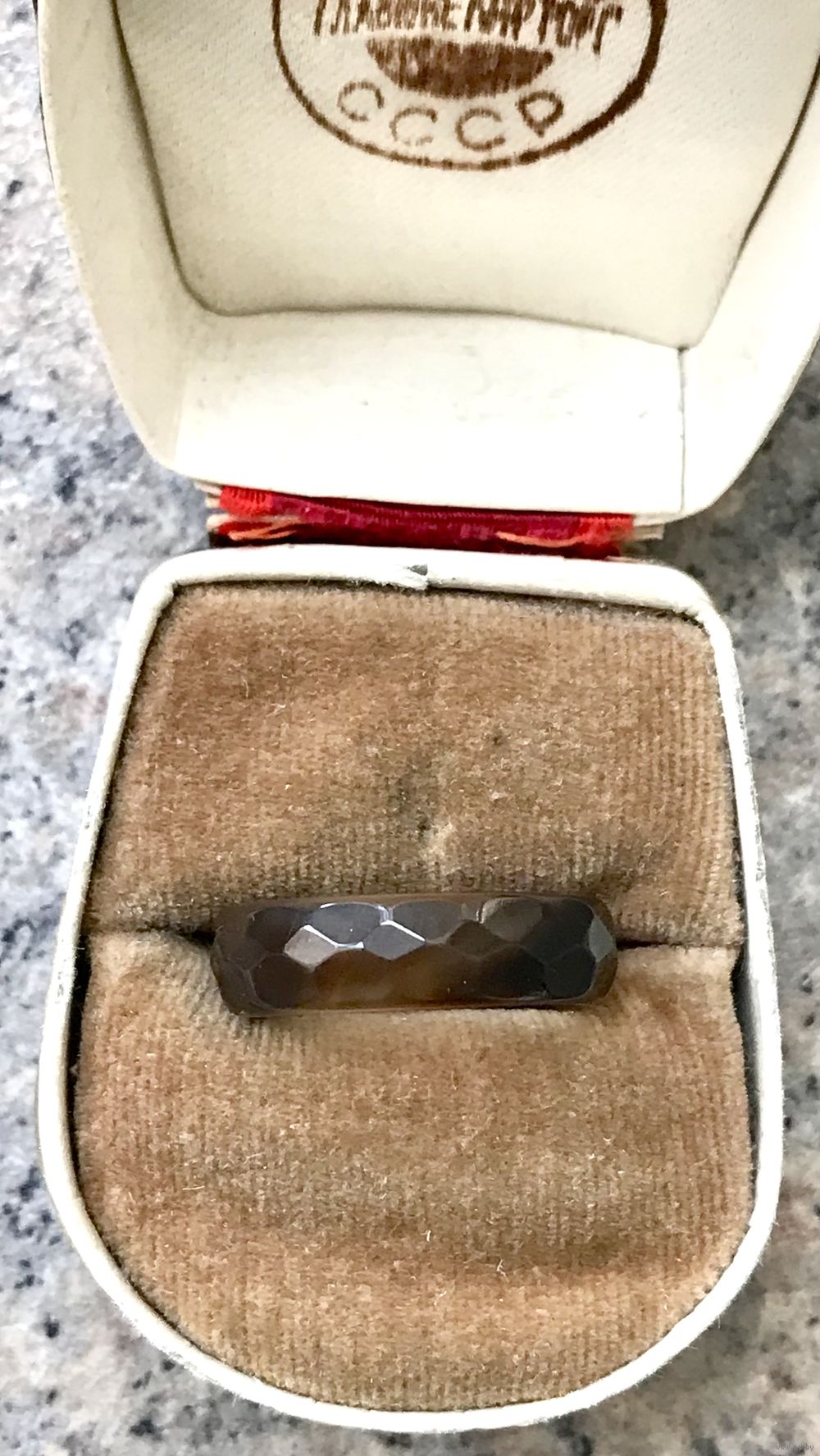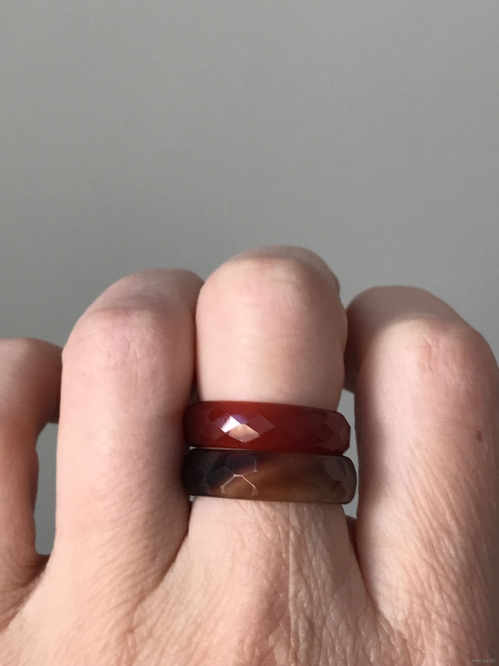 Колечки из гранёного агата. Высота каждого 0,5см., размер тёмного кольца 18, размер второго 17. Состояние хорошее. Цена указана за одно.