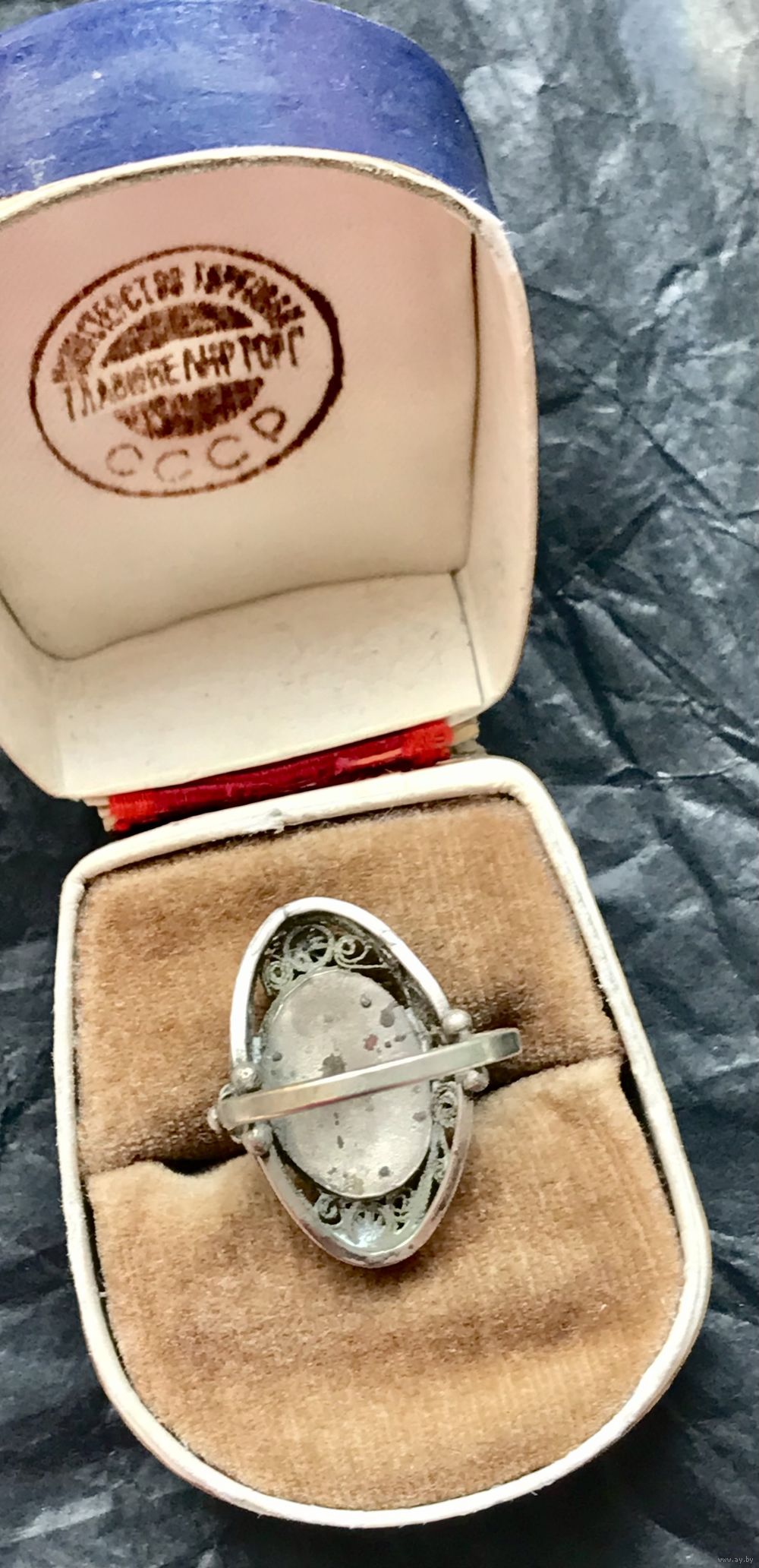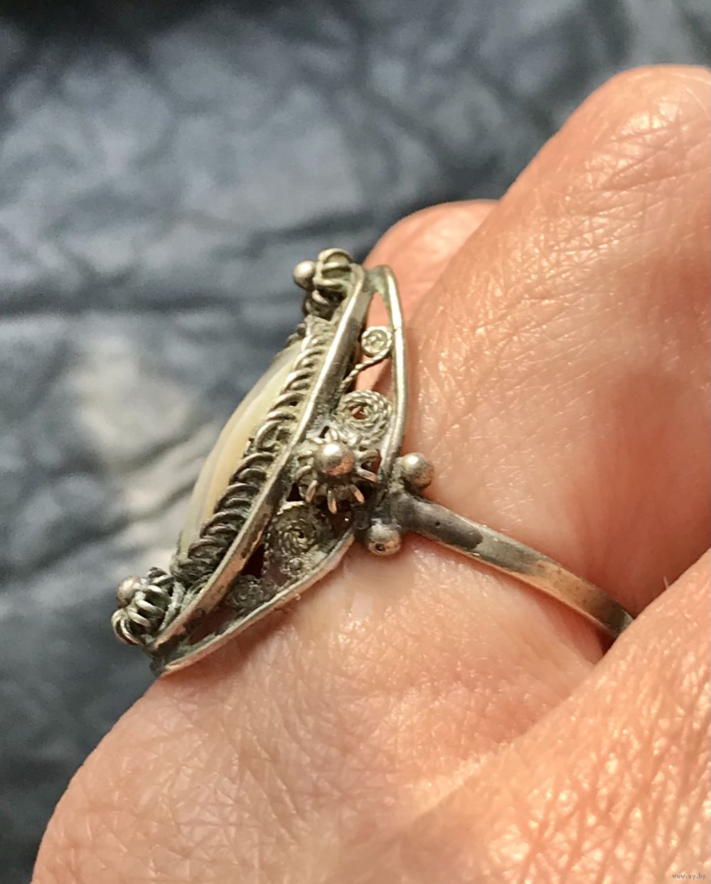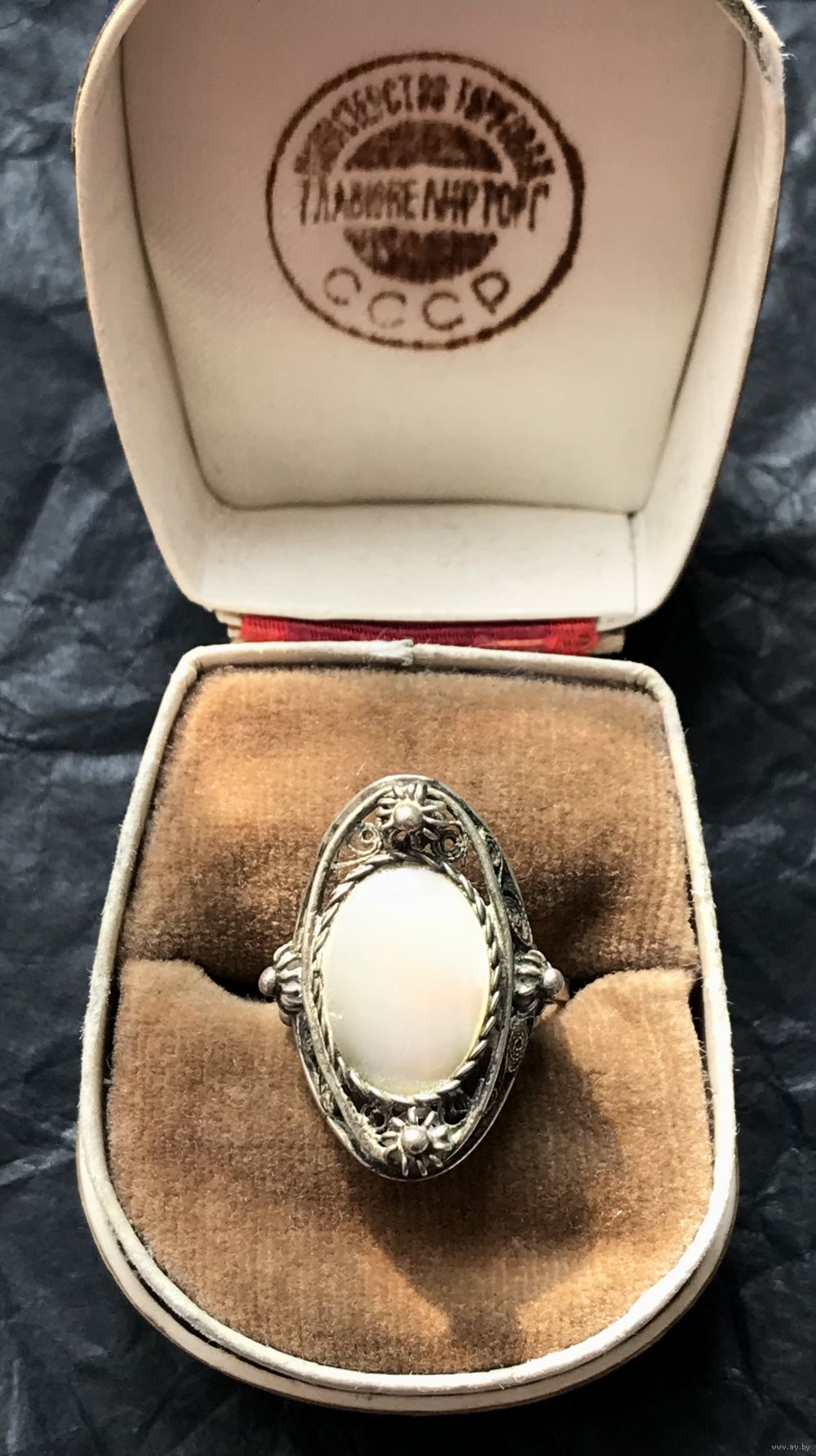 Винтажное кольцо из мельхиора, на лицевой стороне вставка из перламутра. Высота каста 2,4см., размер вставки 1,3х1см., размер кольца 18.