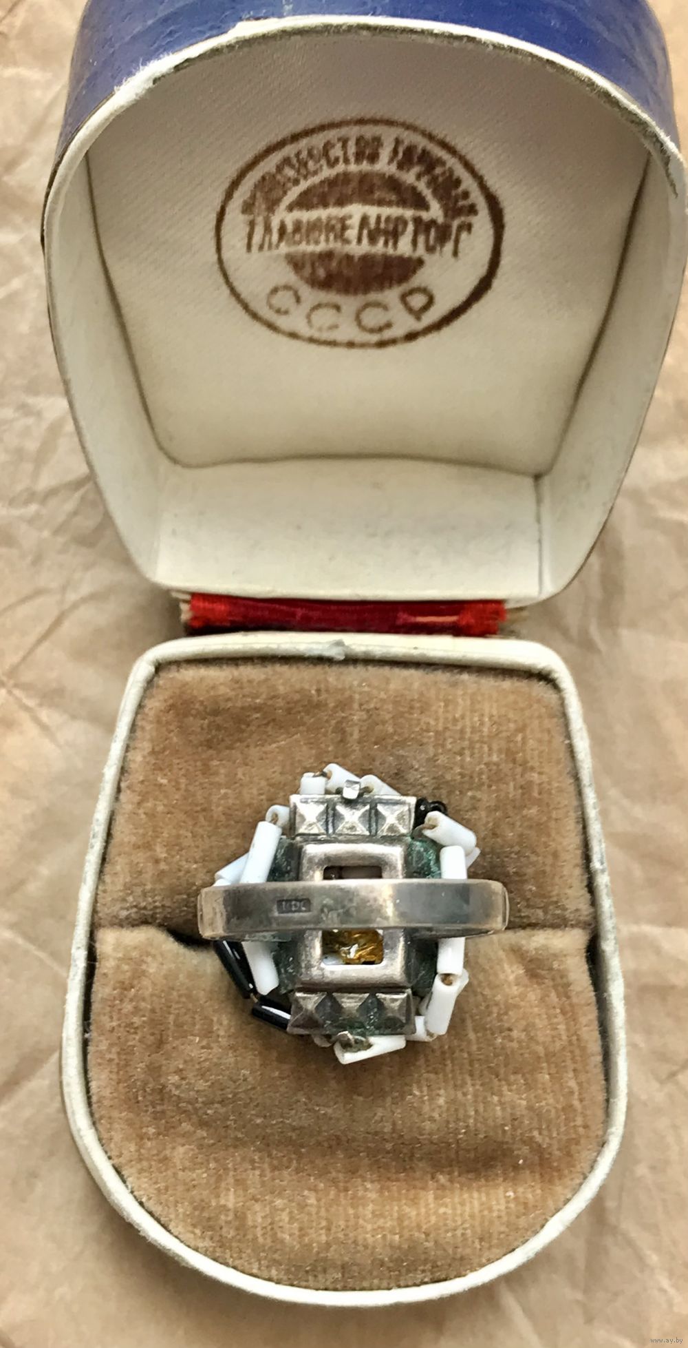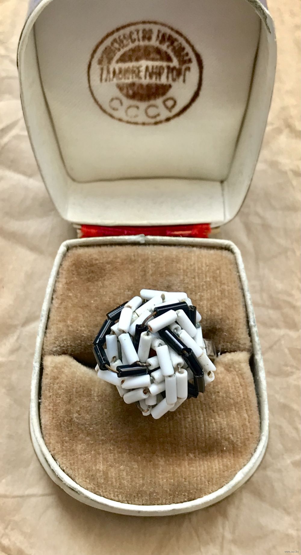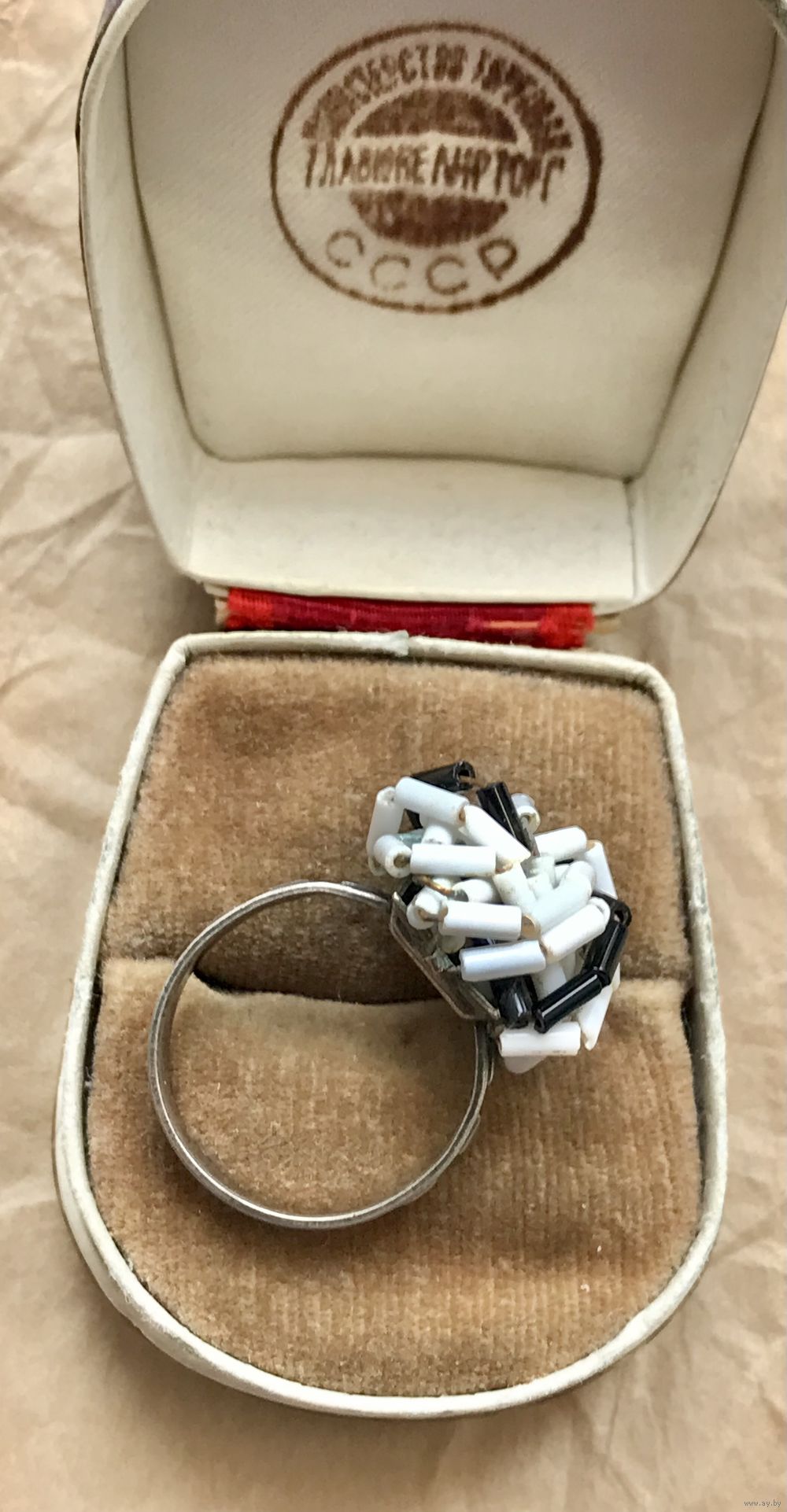 Кольцо апсайклинг. Основа винтажная из мельхиора (стоит отметка 1ФС), каст сделан вручную из бисера. Размер кольца 19.
