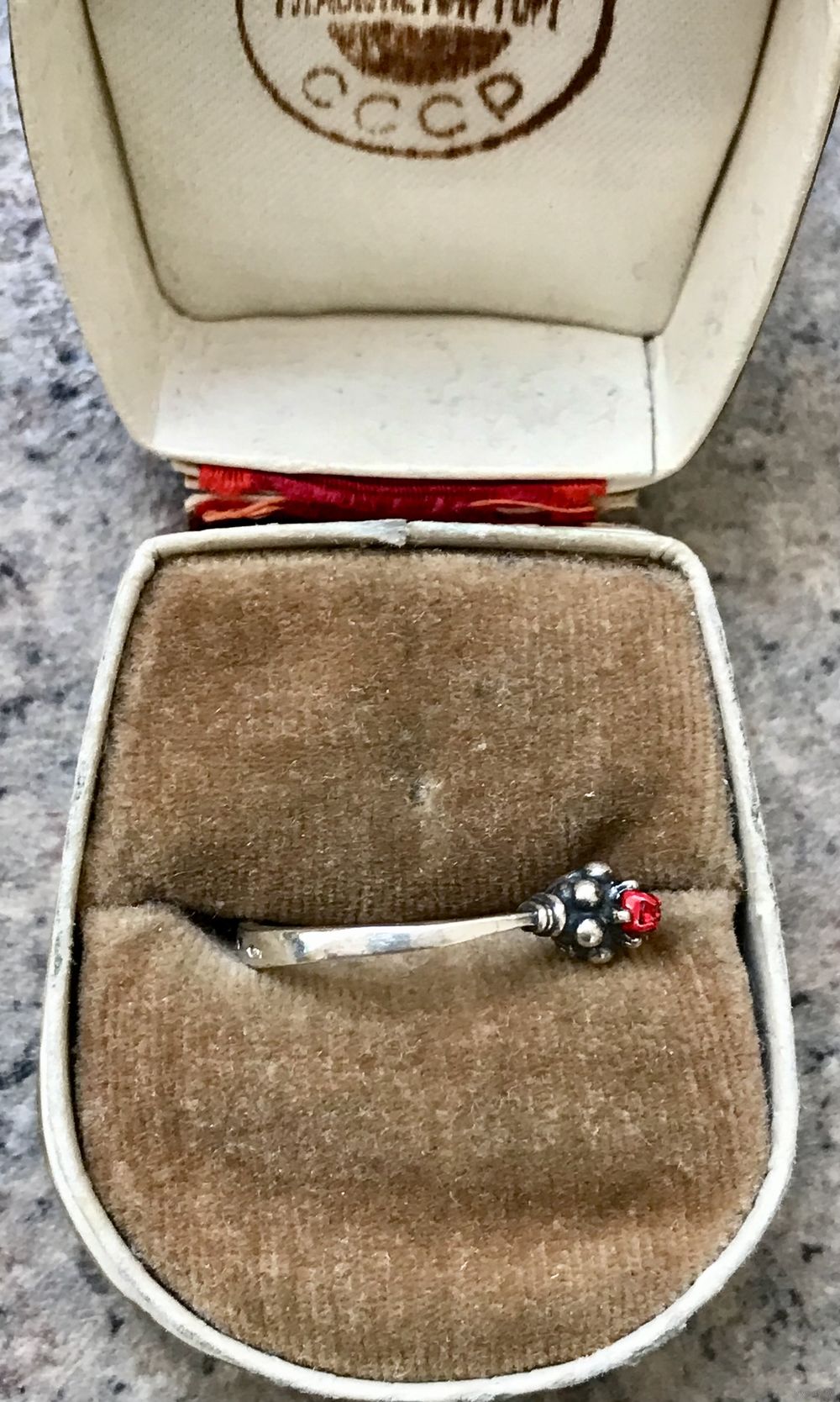 Кольцо из серебра 925пр.(стоит российское пробирное клеймо) и вставкой из кристалла. Размер 17-17,5. Состояние хорошее.