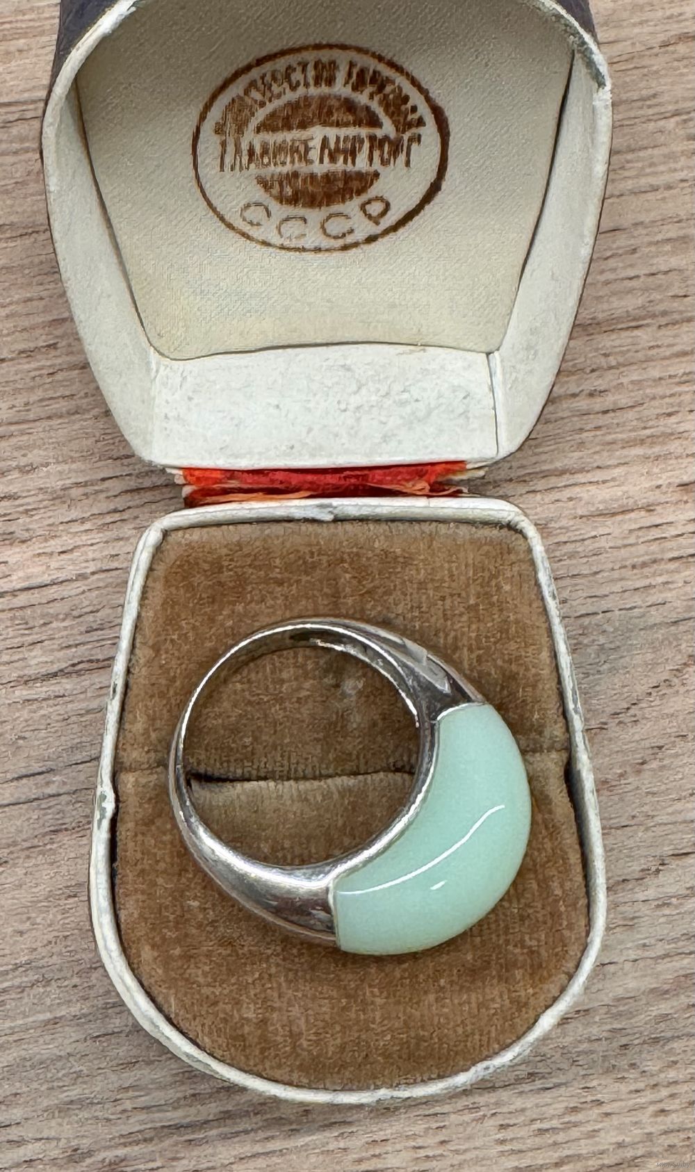 Кольцо из серебра 925пр.(внутри на шинке стоит отметка 925) и вставки из камня приятного мятного цвета. Размер кольца 19, вес 8,34гр. Состояние хорошее.