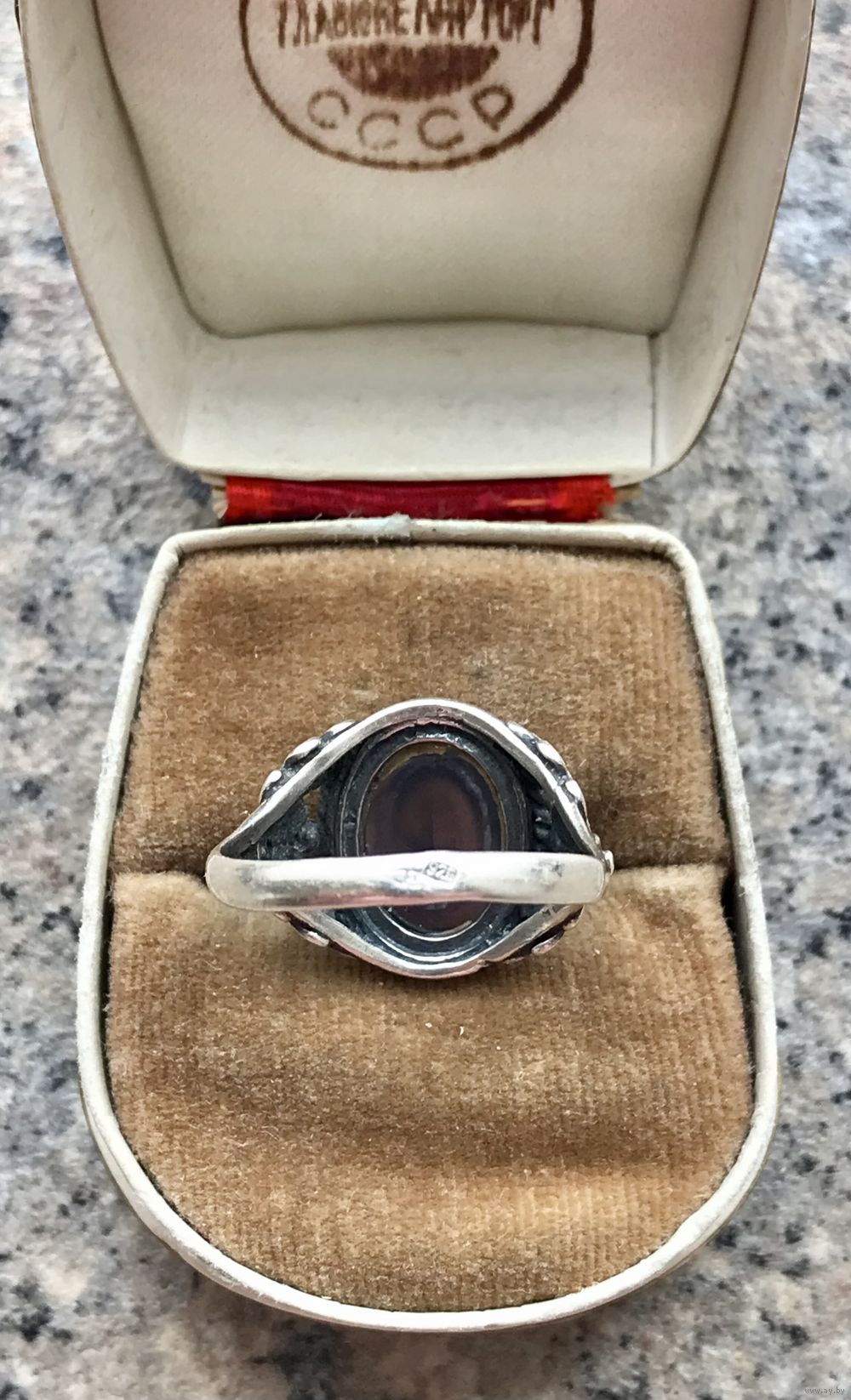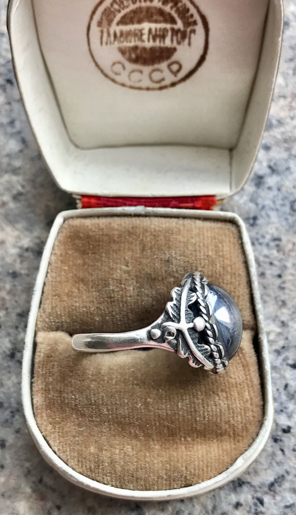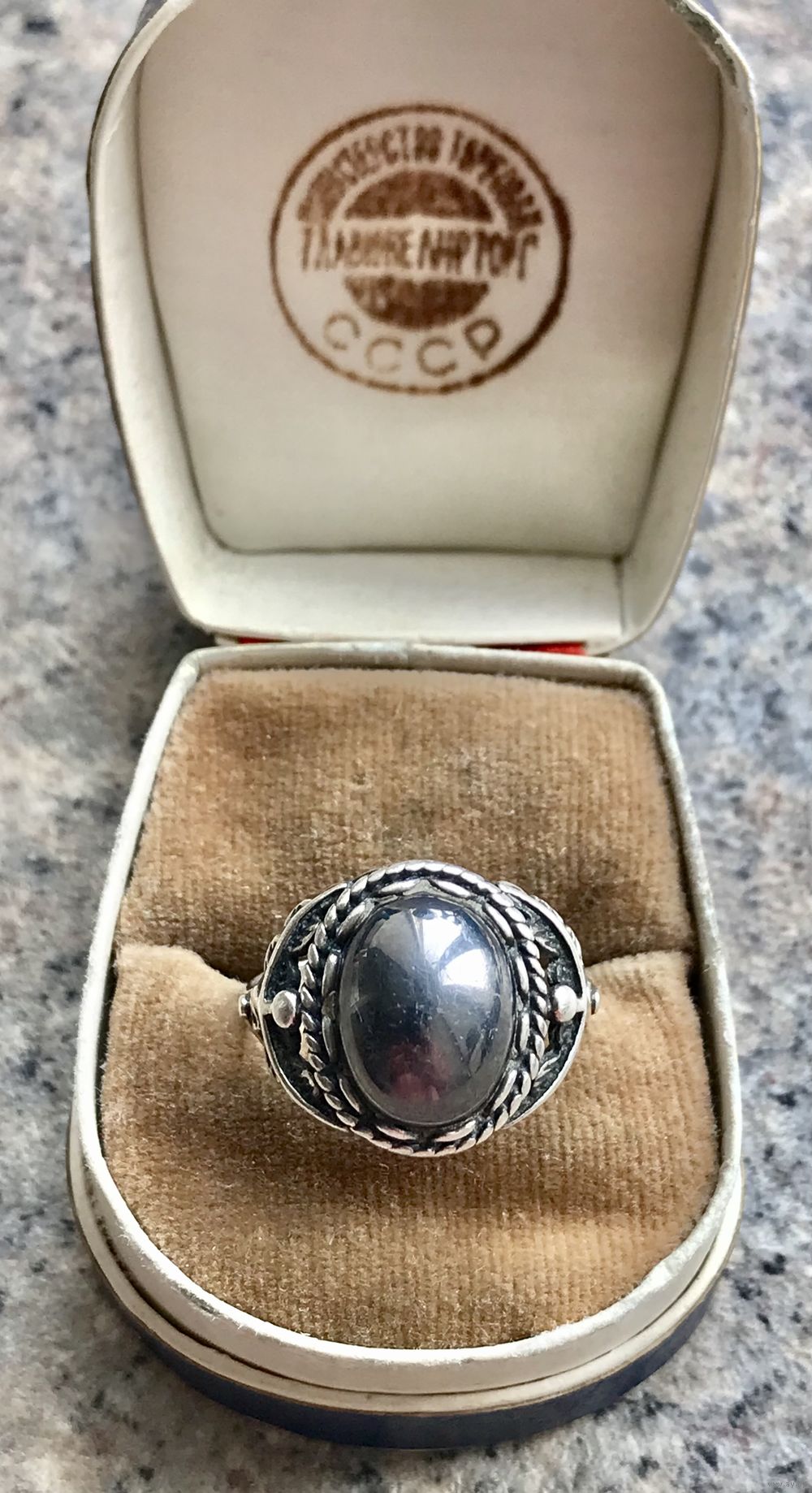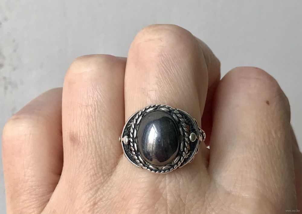 Винтажное кольцо из серебра 925пр. со вставкой из гематита. На вставке имеются незначительные царапки. Размер кольца 19-20.