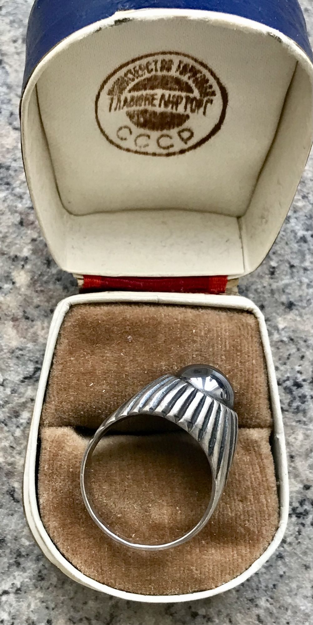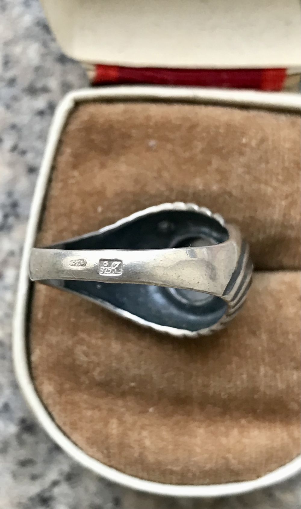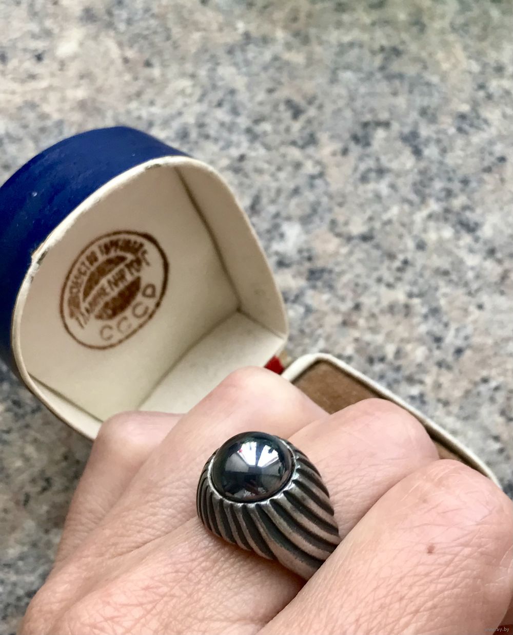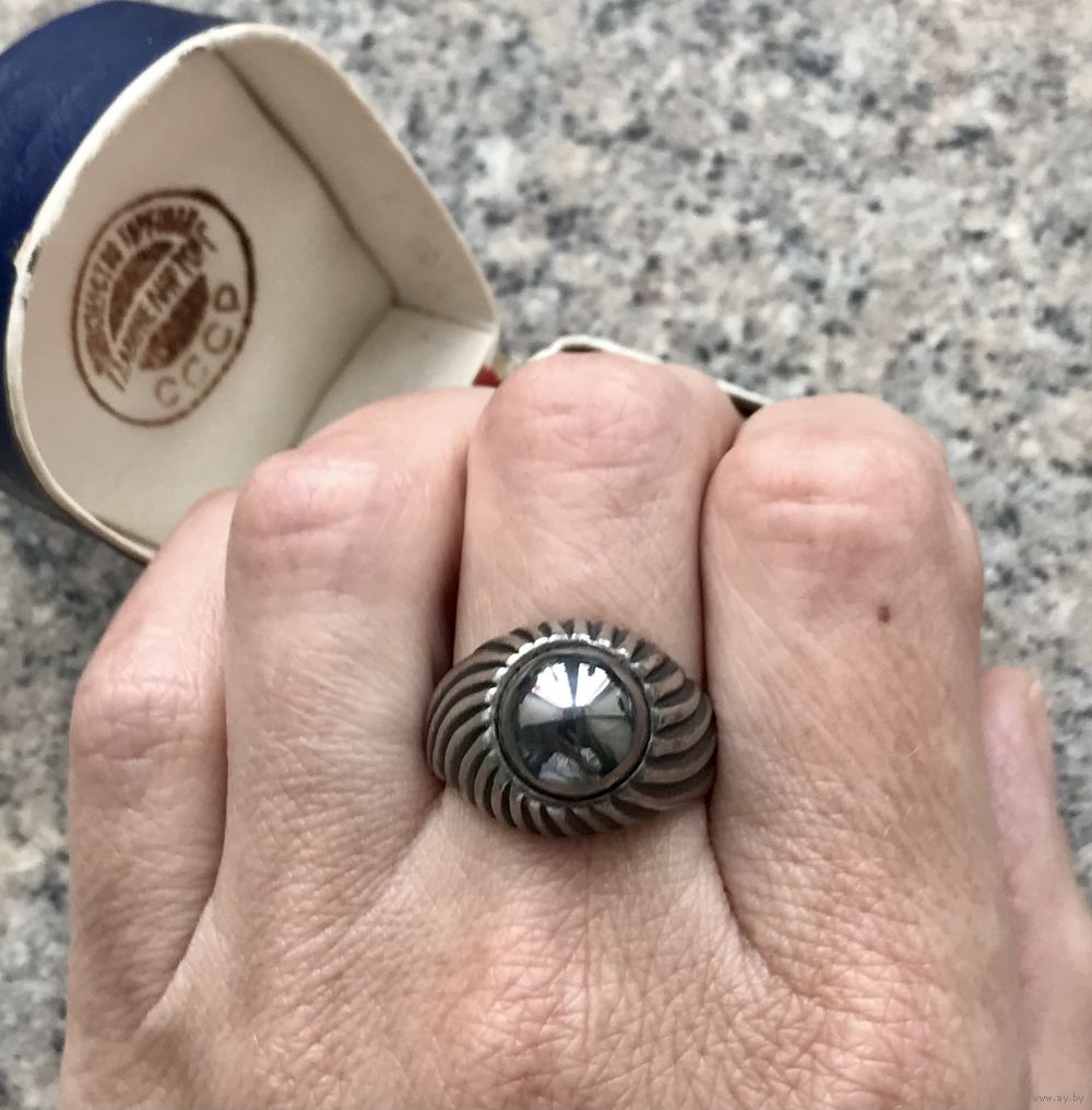 Винтажное крупное кольцо из серебра 925пр. со вставкой из гематита. Размер 19, вес 6,46гр. Состояние хорошее.