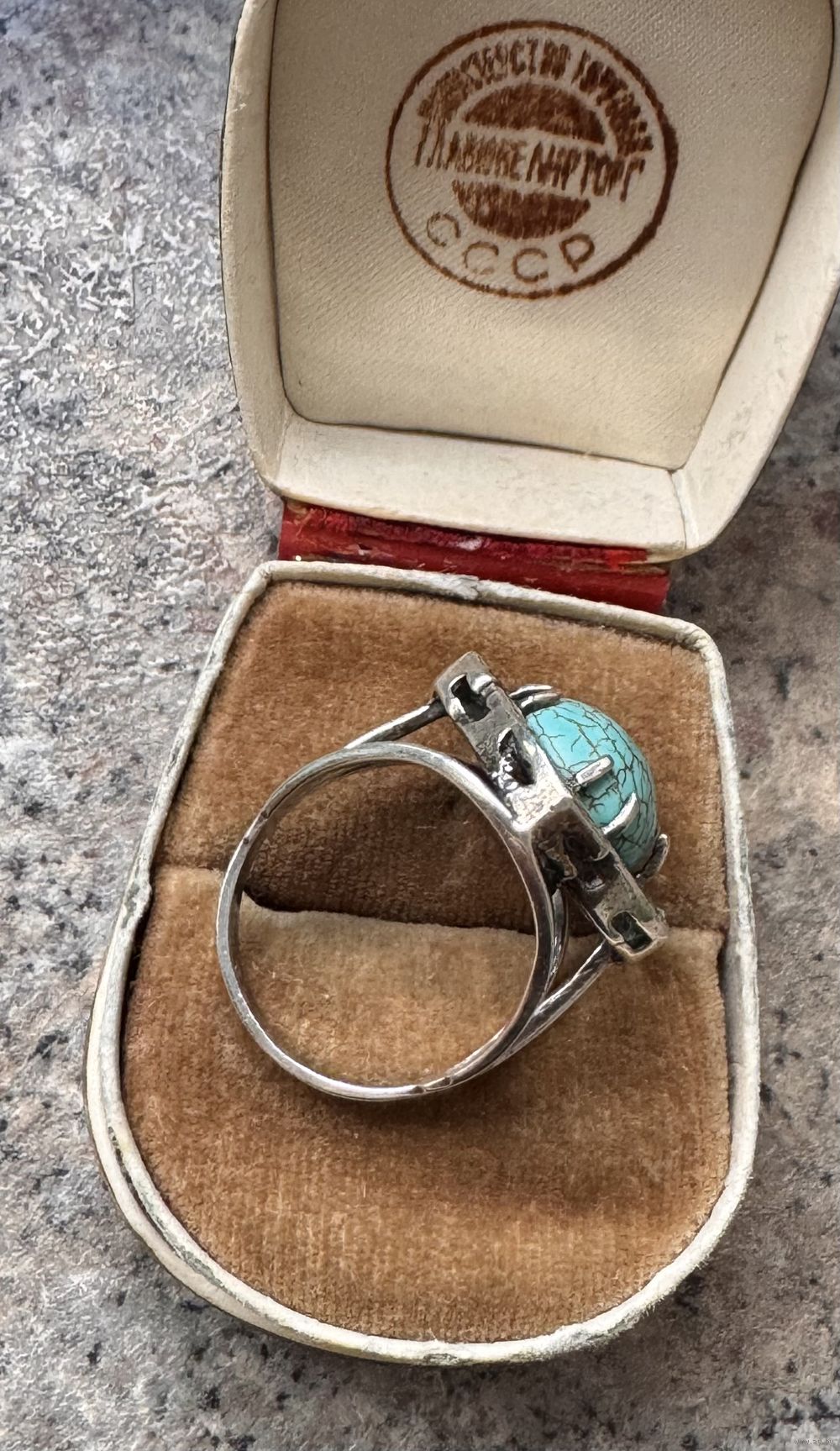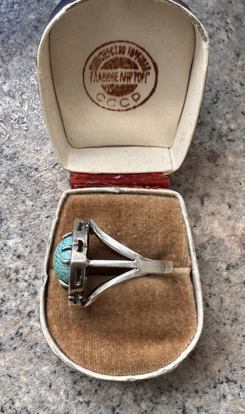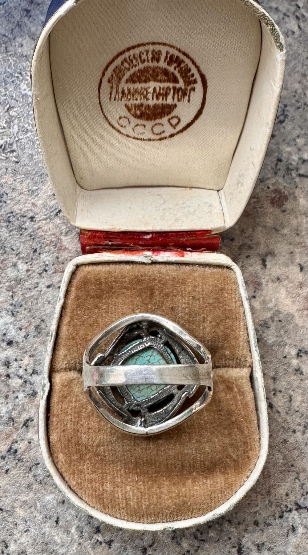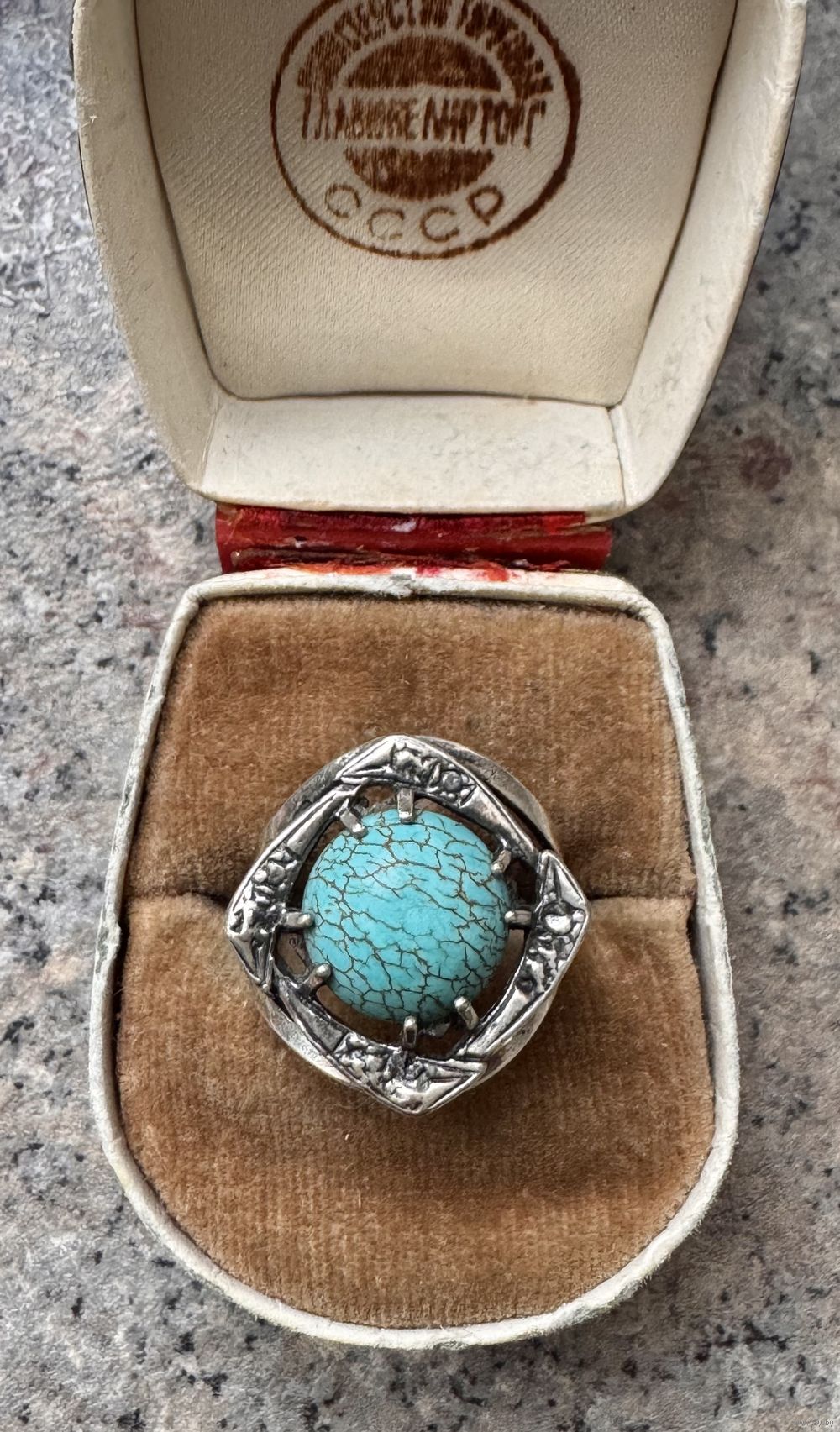 Крупное кольцо с основой из металла с глубоким серебрением. Вставка из худ. стекла. Размер каста 2х2см. Размер кольца 18-19.