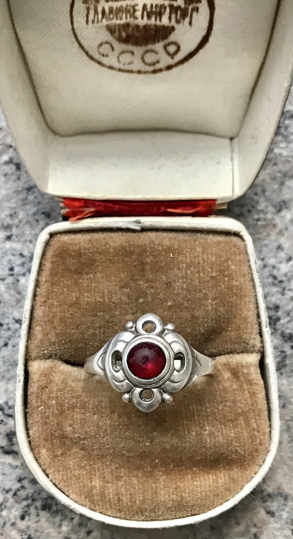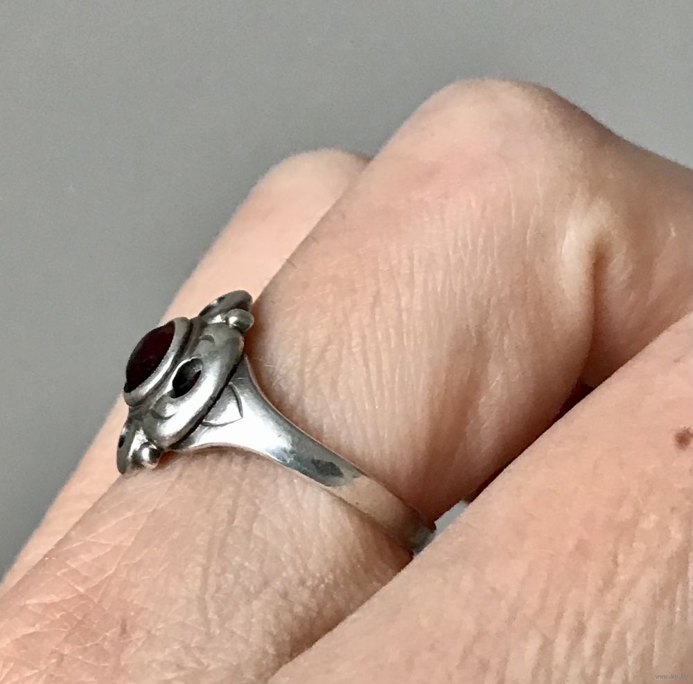 Винтажное кольцо из серебра 800пр., вставка похожа на гранат (есть небольшие потёртости). Вес кольца 2,78гр., размер 18.