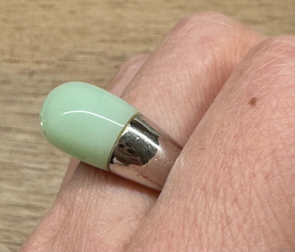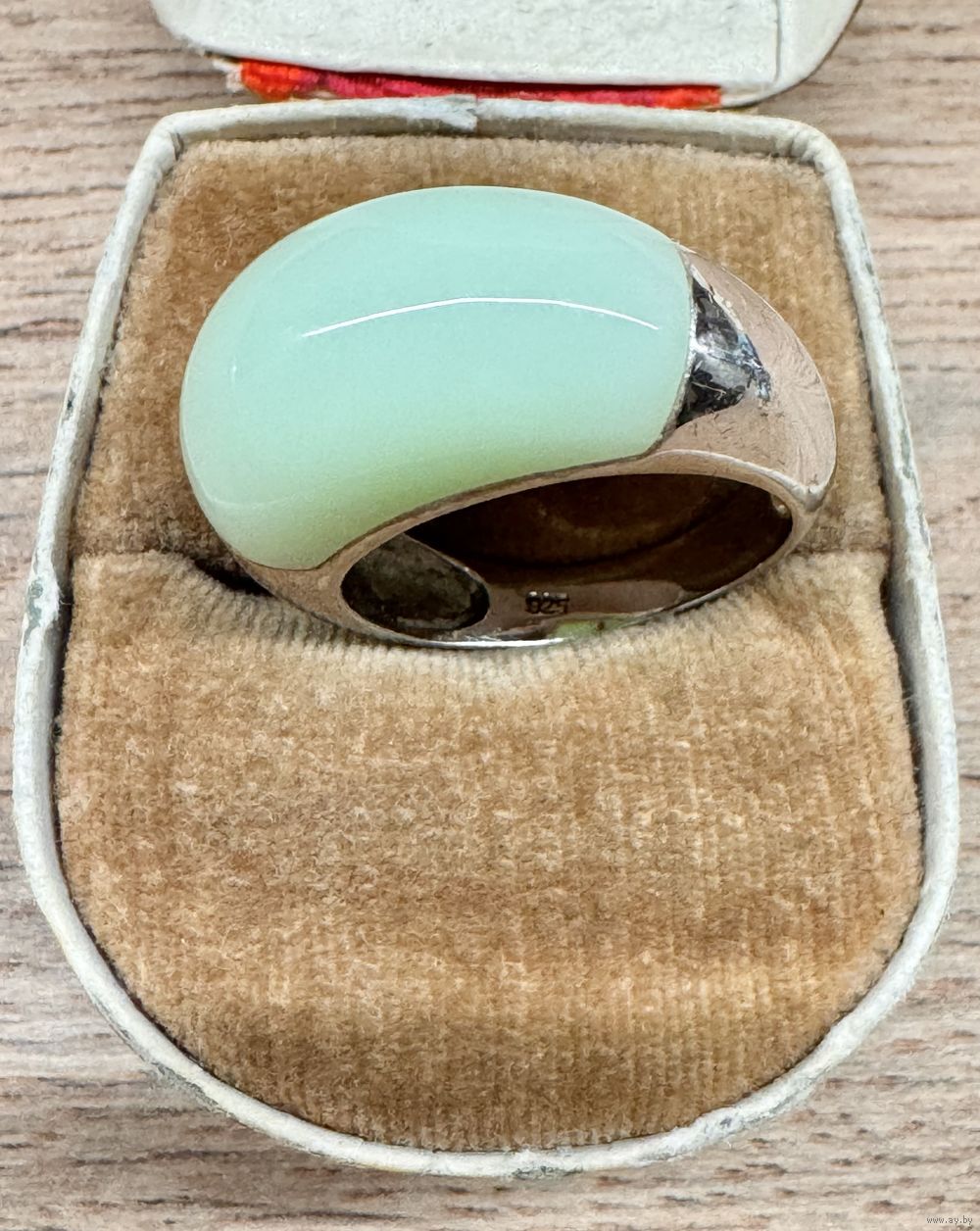 Кольцо из серебра 925пр.(внутри на шинке стоит отметка 925) и вставки из камня приятного мятного цвета. Размер кольца 19, вес 8,34гр. Состояние хорошее.