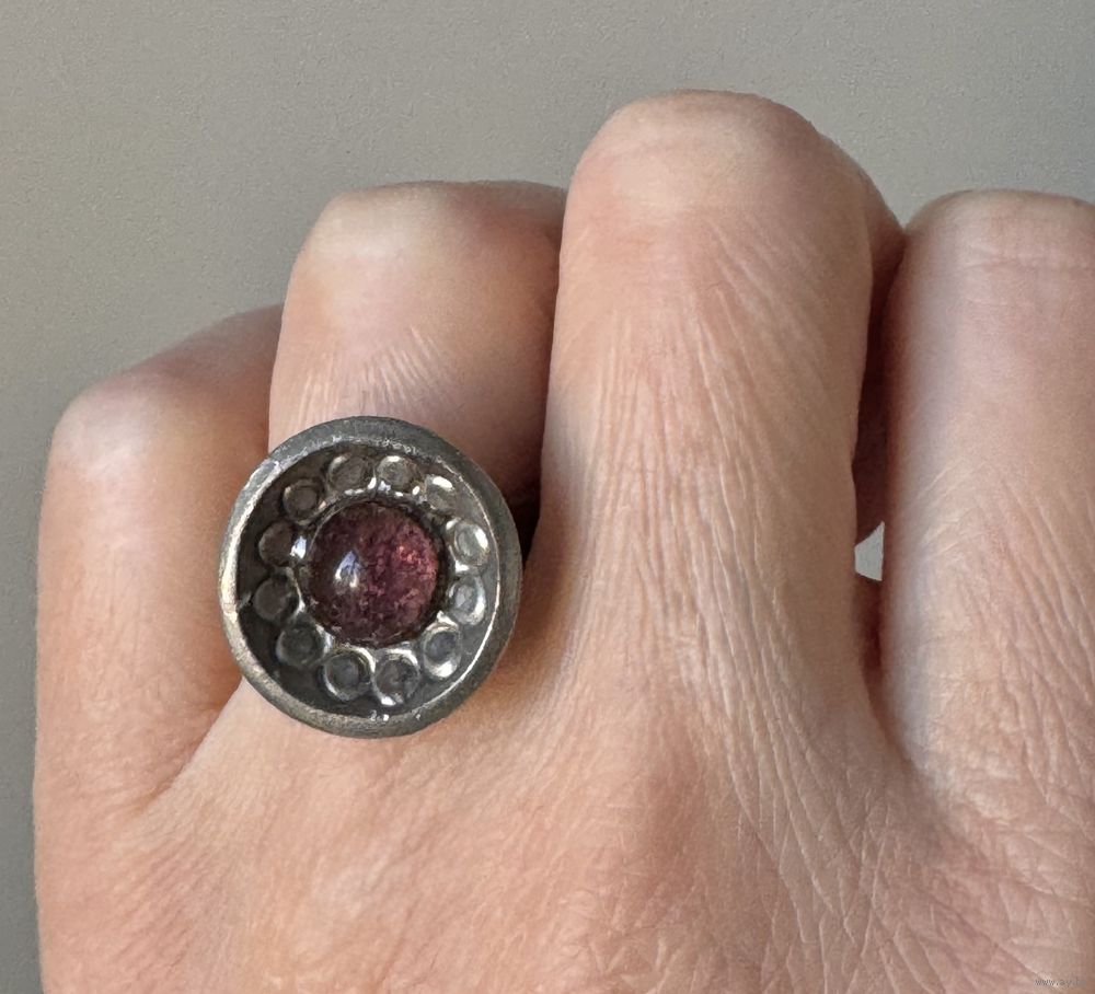 Винтажное шведское кольцо из пьютера, вставка из стекла. Диаметр каста 1,8см., высота шинки 0,5см., разъемное. Внутри маркировано. Состояние хорошее.