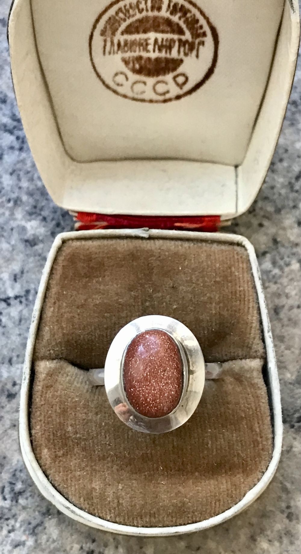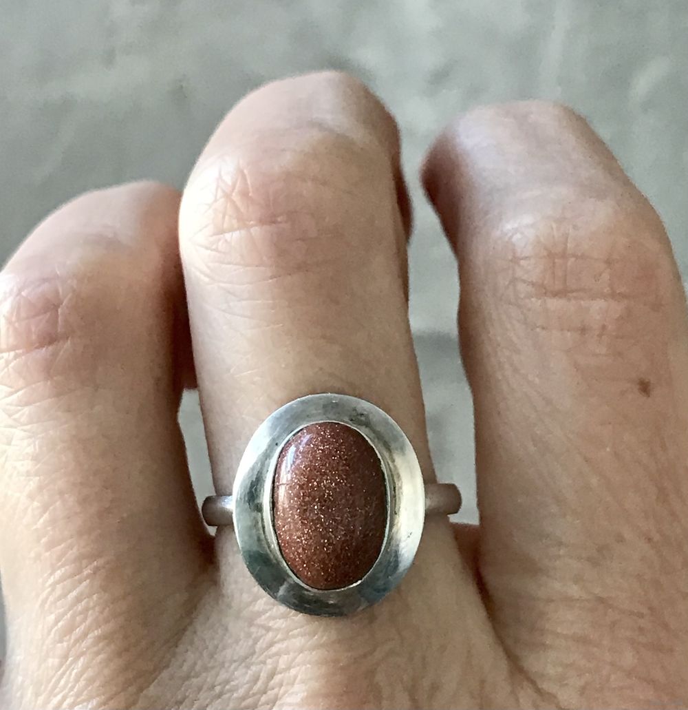Кольцо из серебра 925пр. со вставкой из авантюрина. Размер 18. Вес 4,24гр. Состояние хорошее.