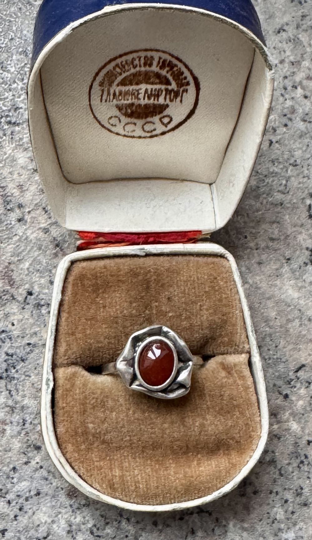 Кольцо из серебра 925пр. и вставки из сердолика. Размер 19. Вес 2,68гр. Состояние хорошее.