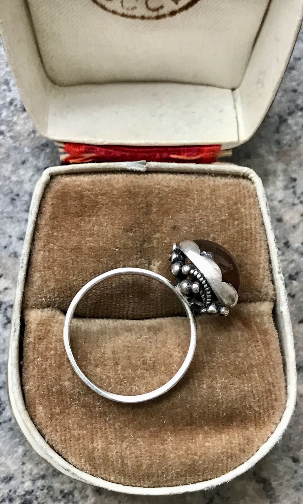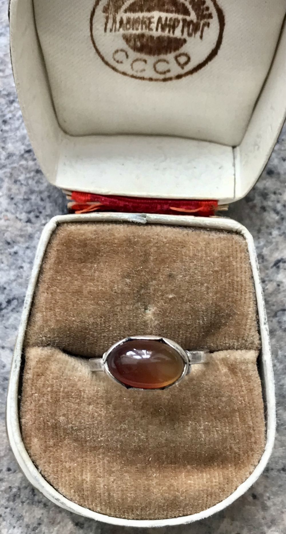 Винтажное колечко из серебра 875пр. со вставкой из сердолика. Сделано на Свердловском ювелирном заводе. Размер 16. Состояние хорошее.