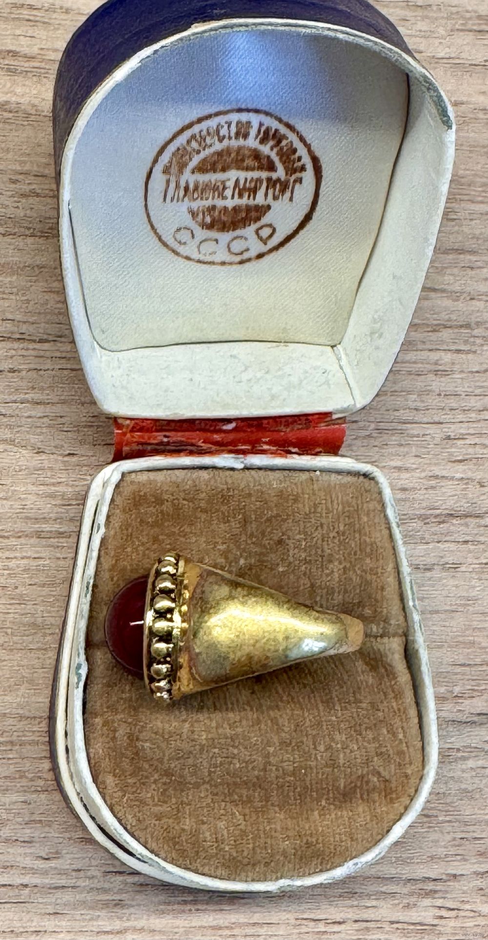 Кольцо португальского бренда женских аксессуаров Parfois. Сделано из металла золотого тона, вставка из смолы темно-бордового цвета (с одной стороны имеется небольшой скол). Размер кольца 18.