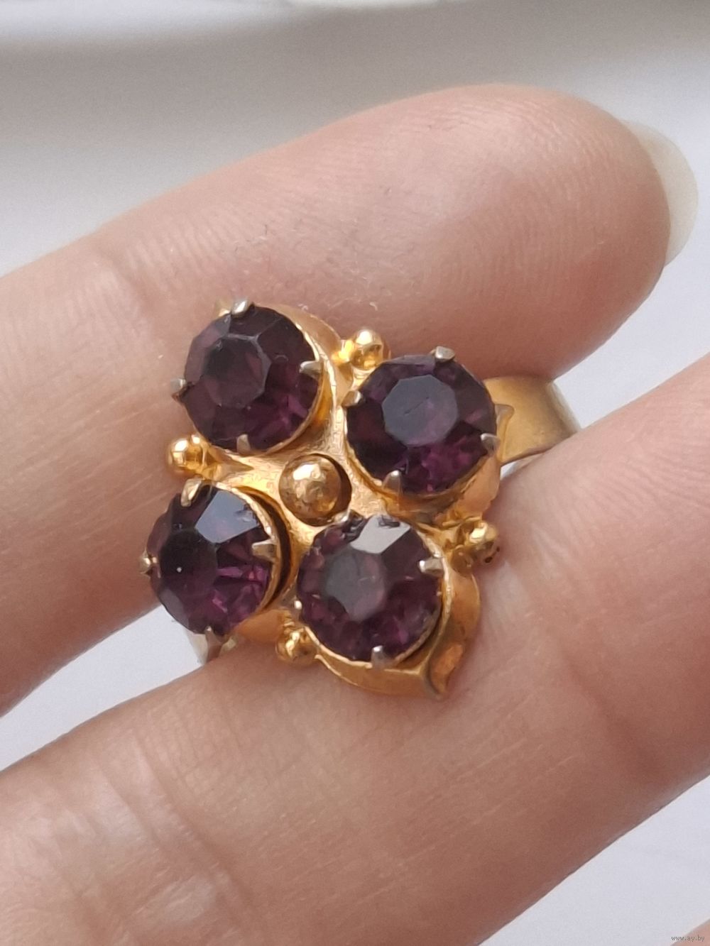 Кольцо, аметистовые кристаллы. Перстень. 70-е, СССР