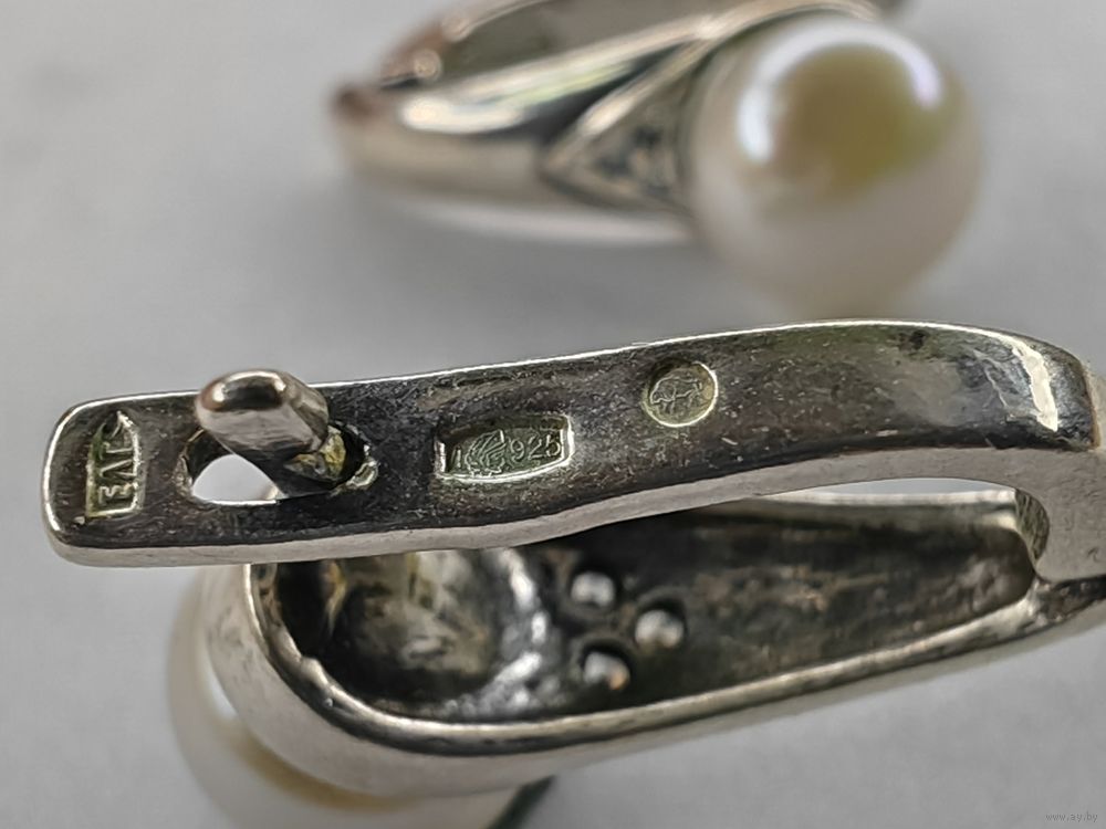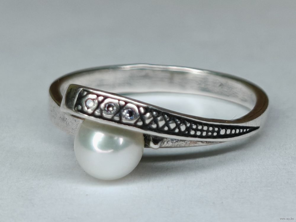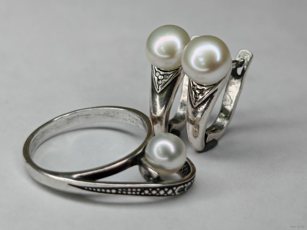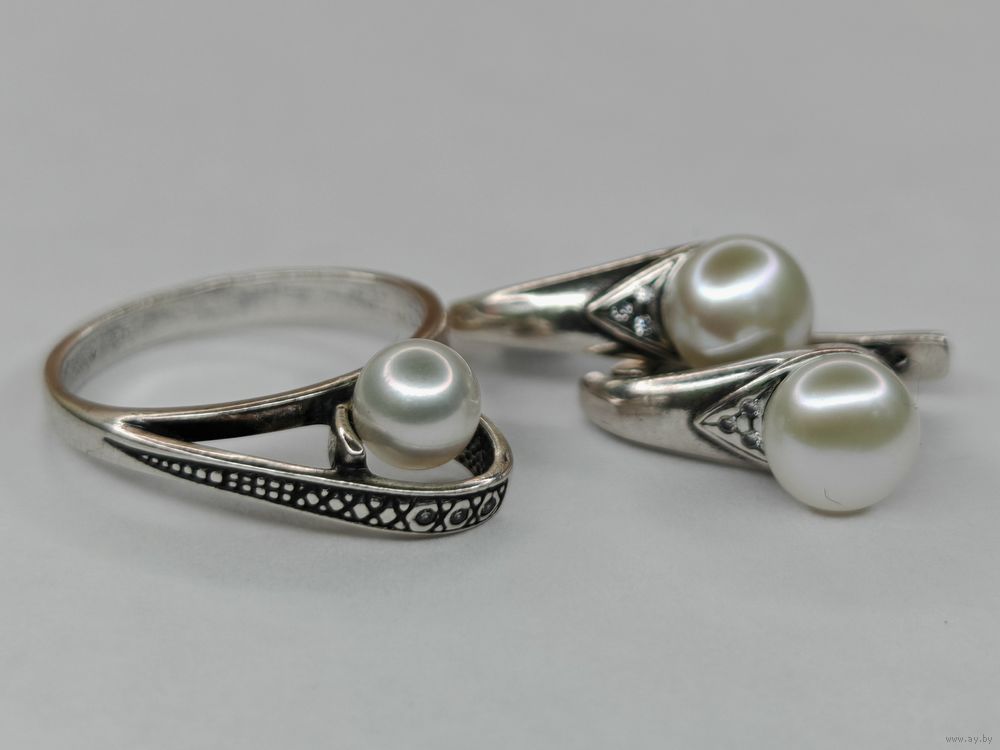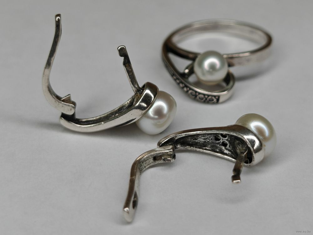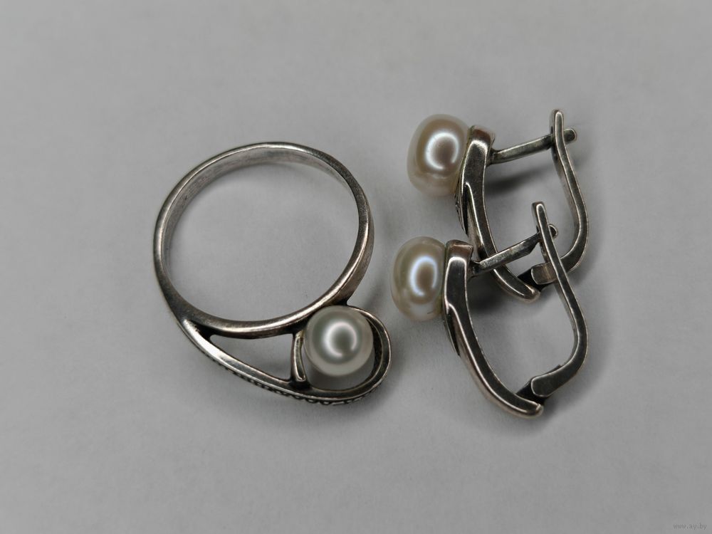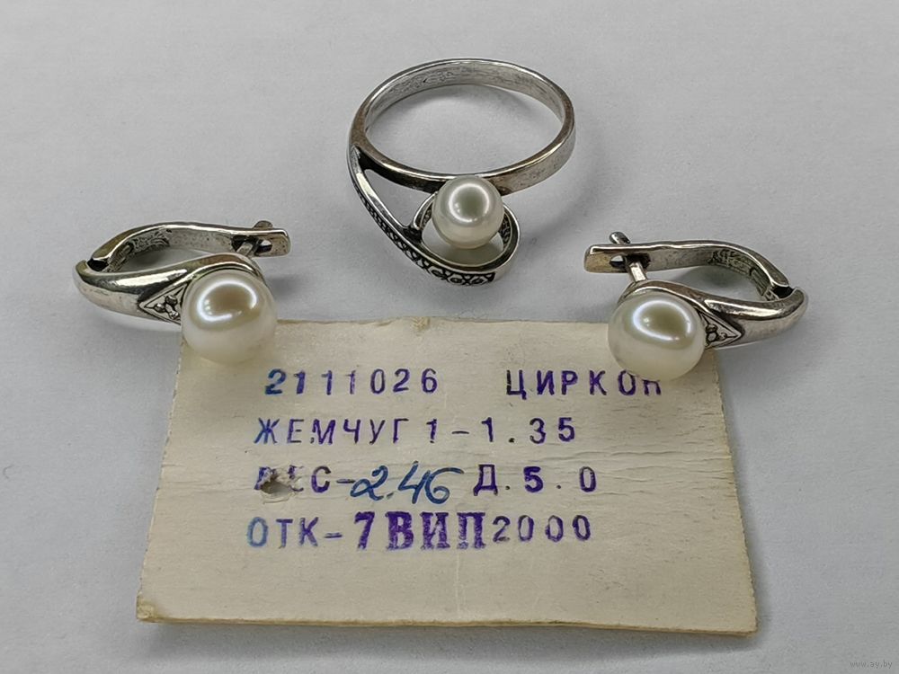 Кольцо 17,5 мм. и серьги с Жемчугом Серебро 925 пр. Вес 2,46 гр.