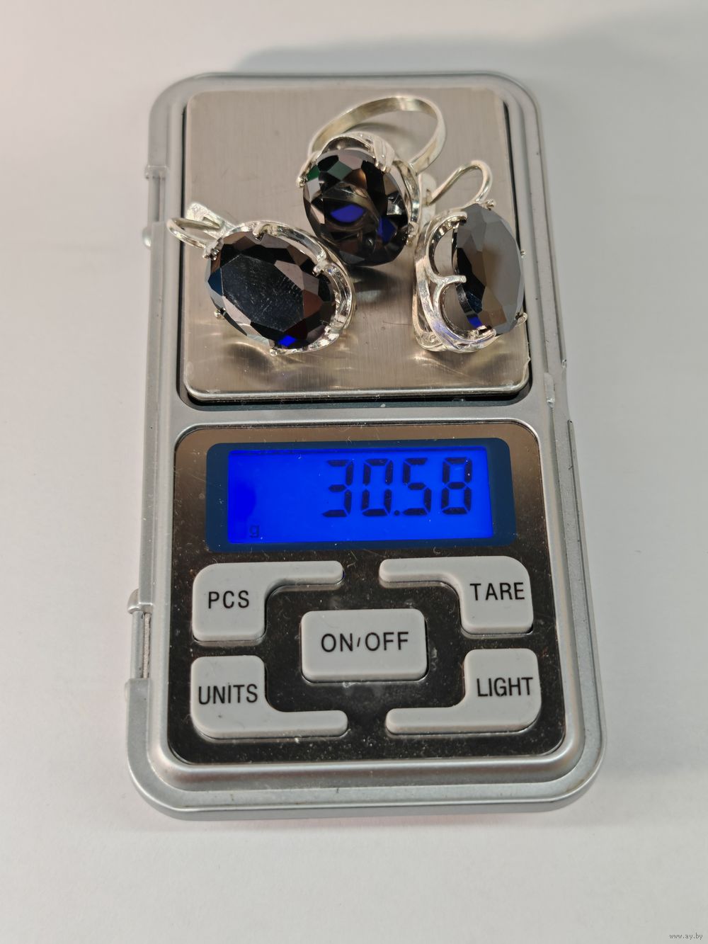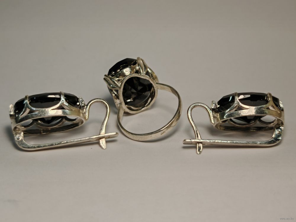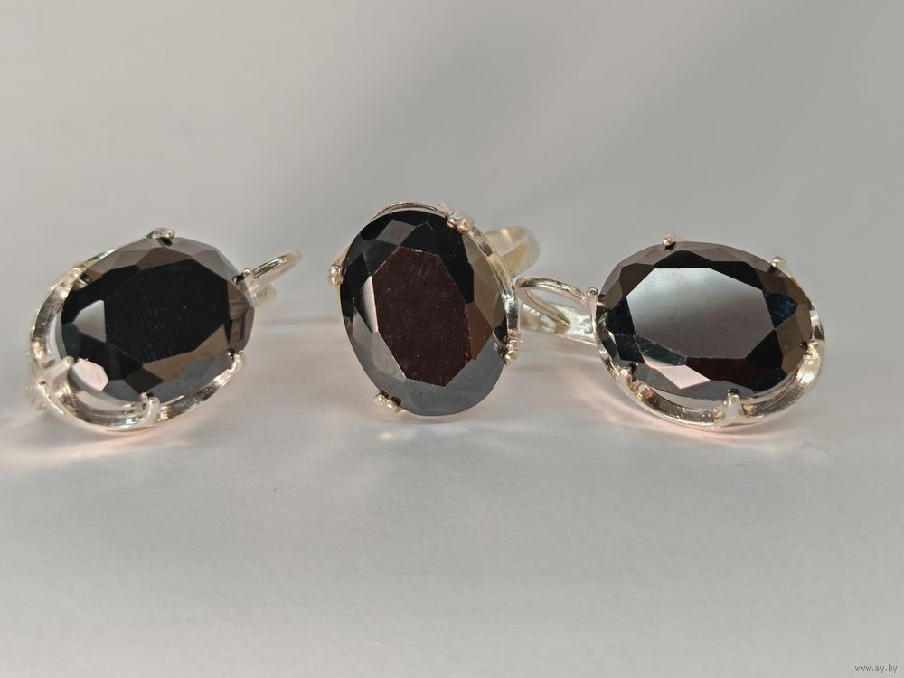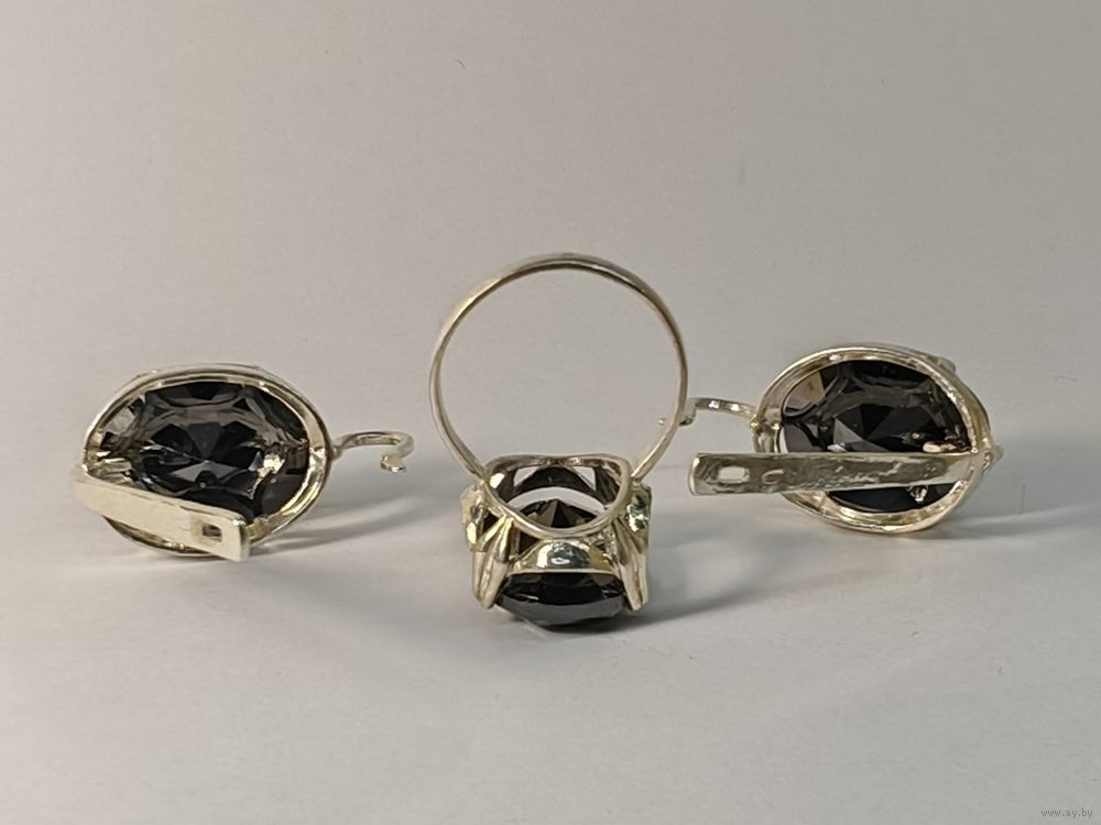 Кольцо и серьги серебро 925 пр. Размер 20 мм. Ювелирное стекло. С рубля.