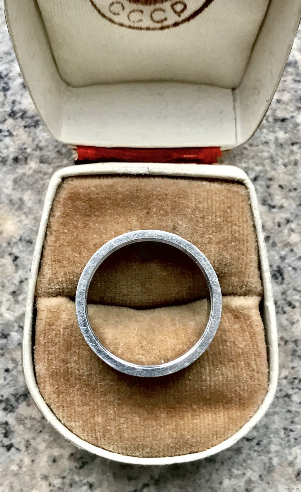 Кольцо унисекс из стали. Высота кольца 0,6см., размер 19, присутствуют незначительные следы ношения.