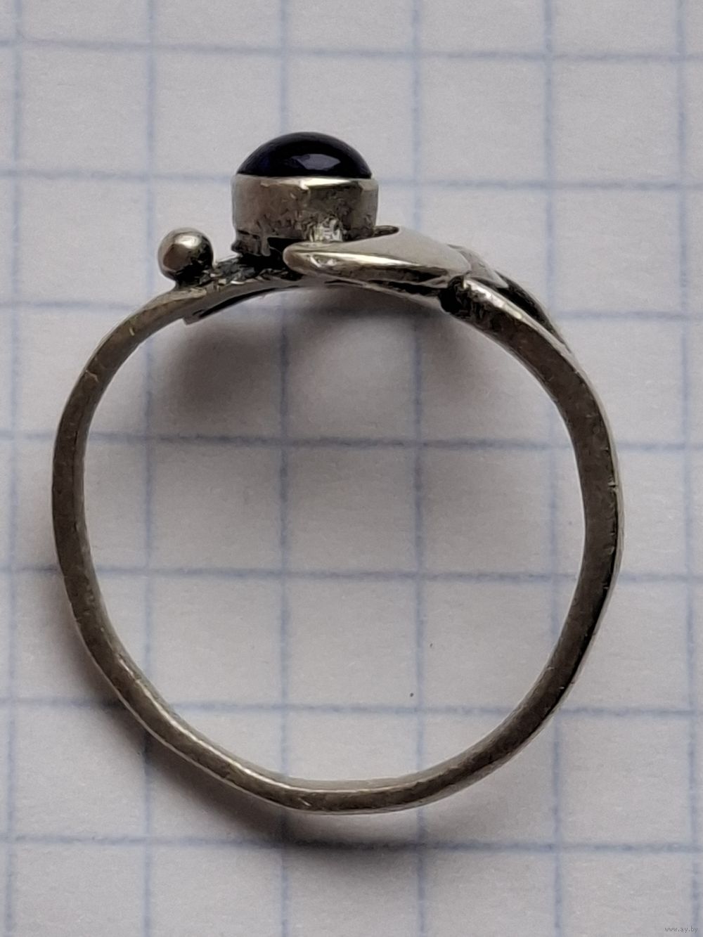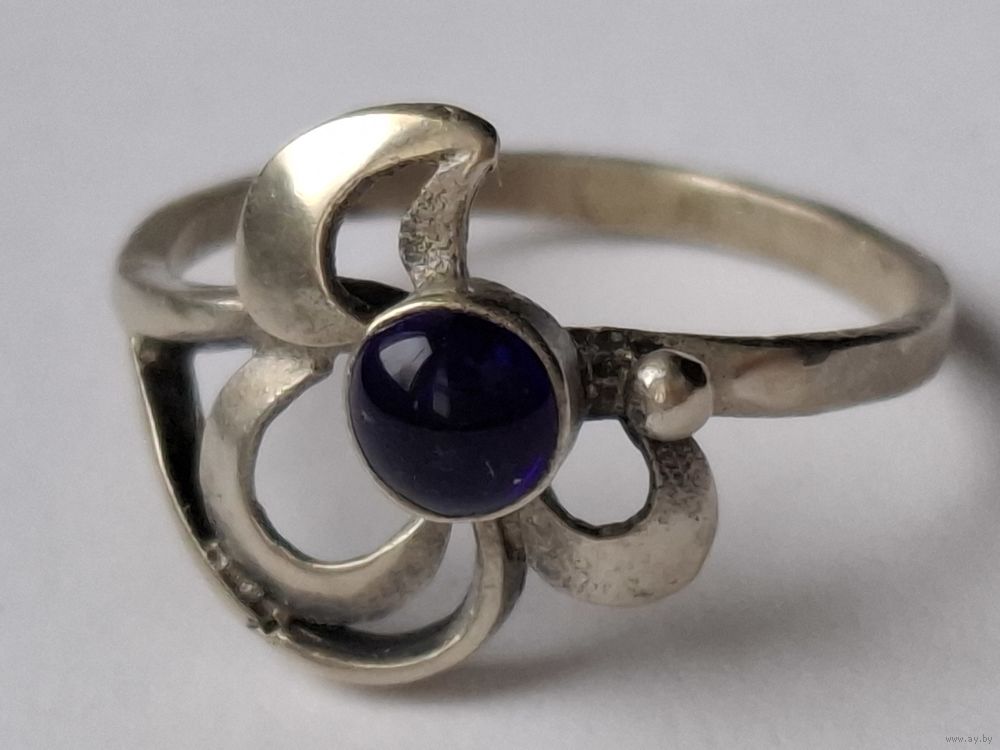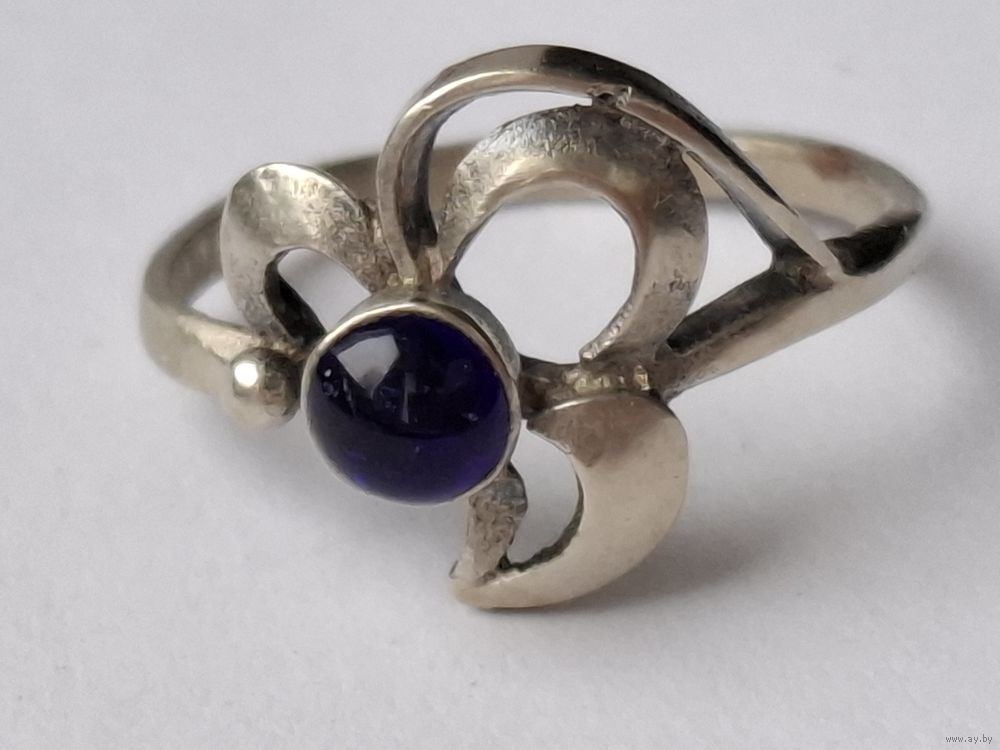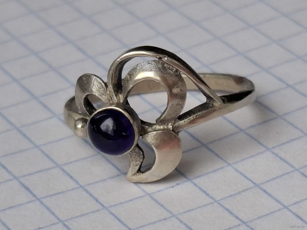 Кольцо с камнем синего цвета. Размер 18. Мельхиор