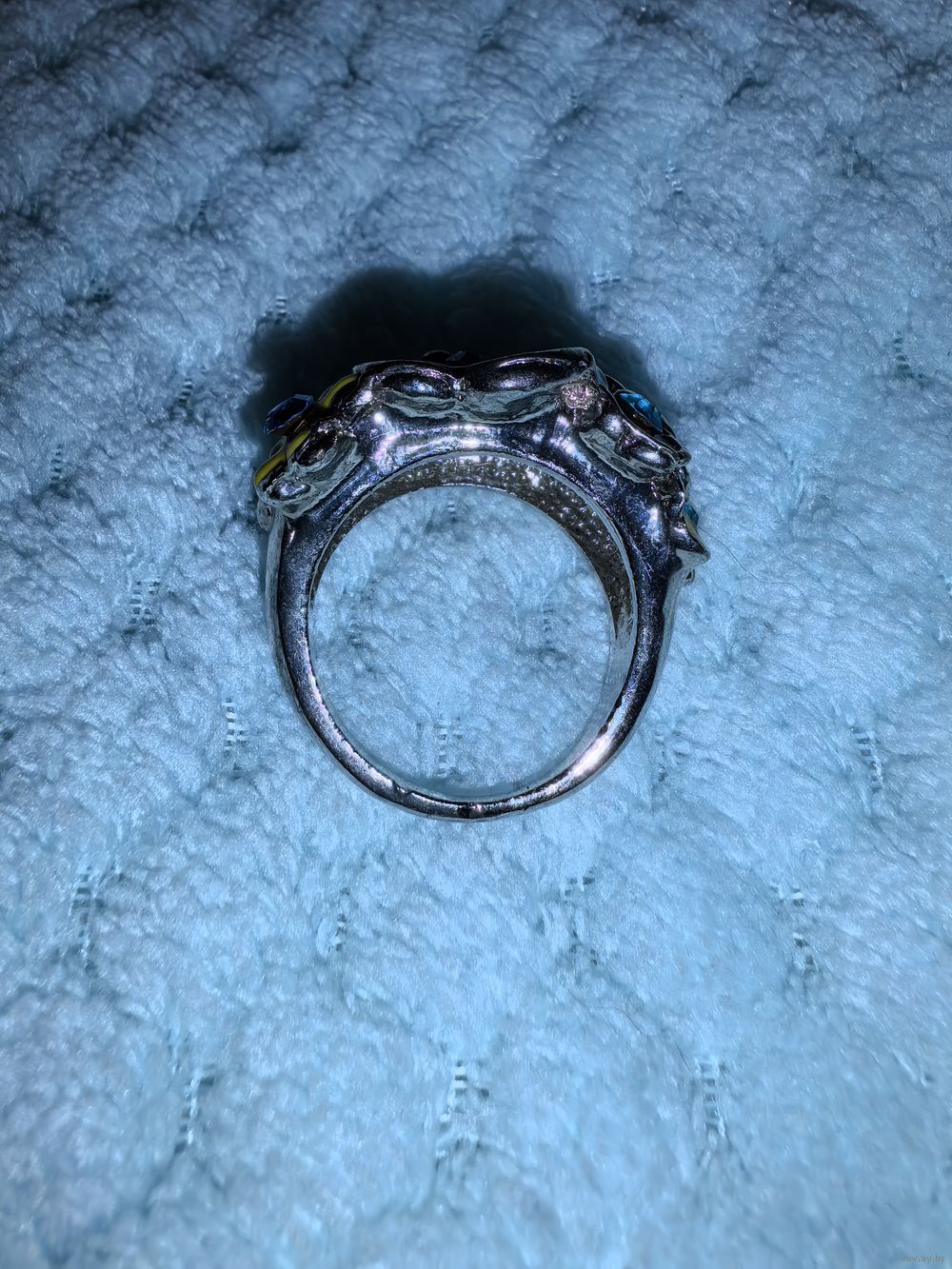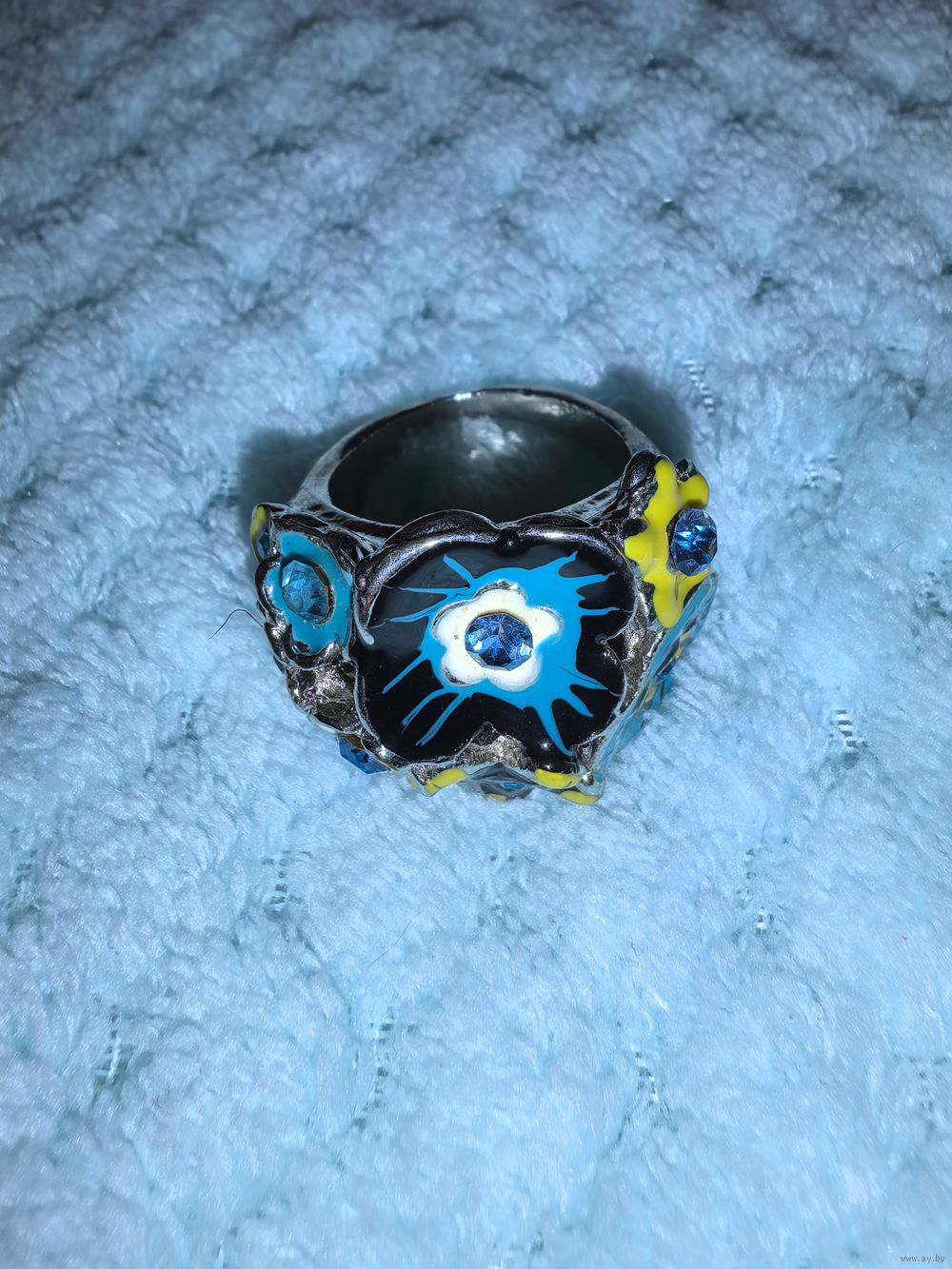 Массивное кольцо с объёмным цветочным дизайном. В стиле, напоминающем бохо, или этнику.