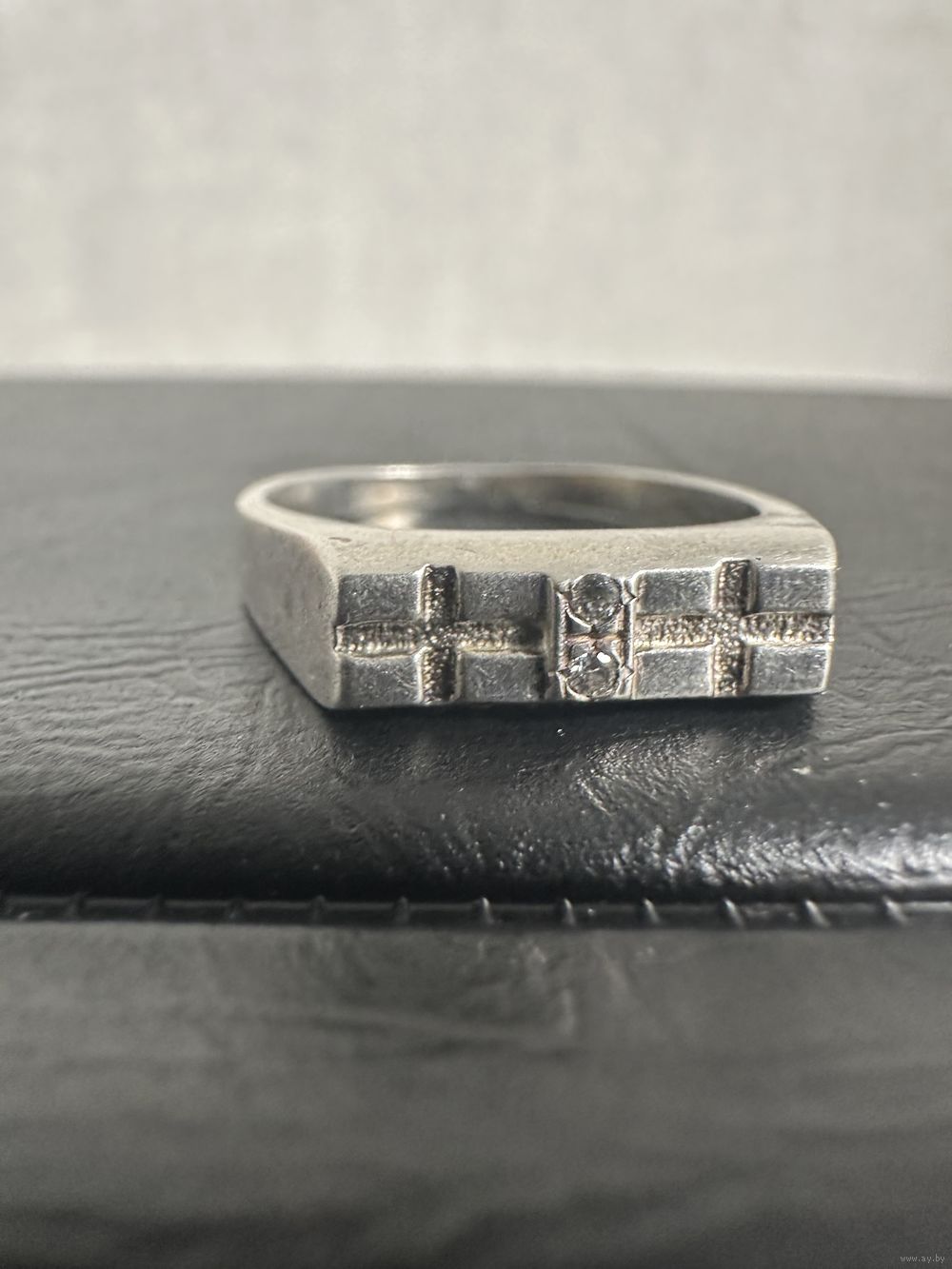 Кольцо. Серебро 925 пробы. Перстень мужской 2 креста 2 камня