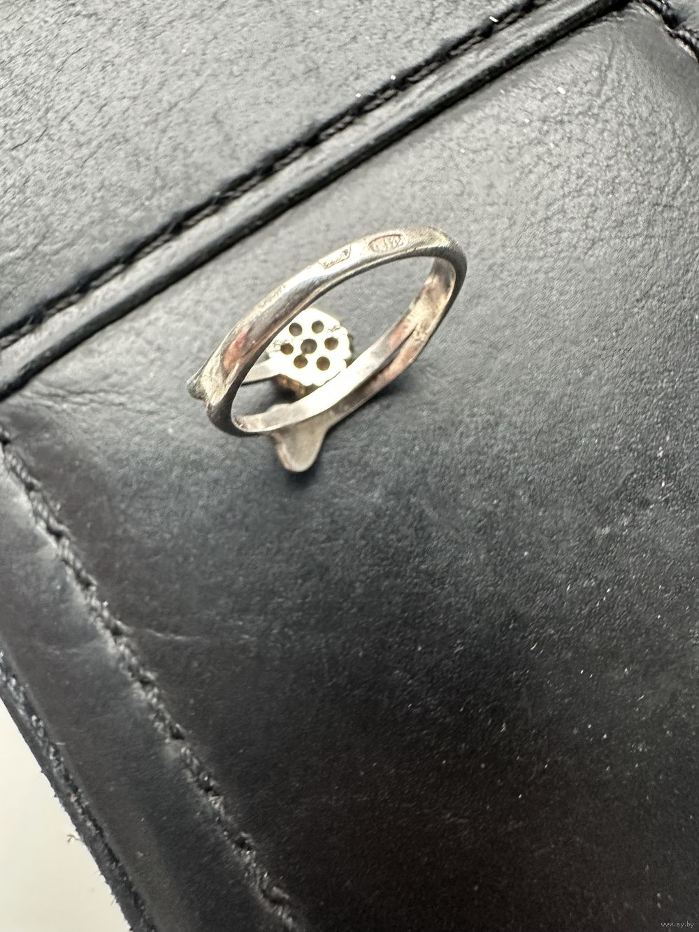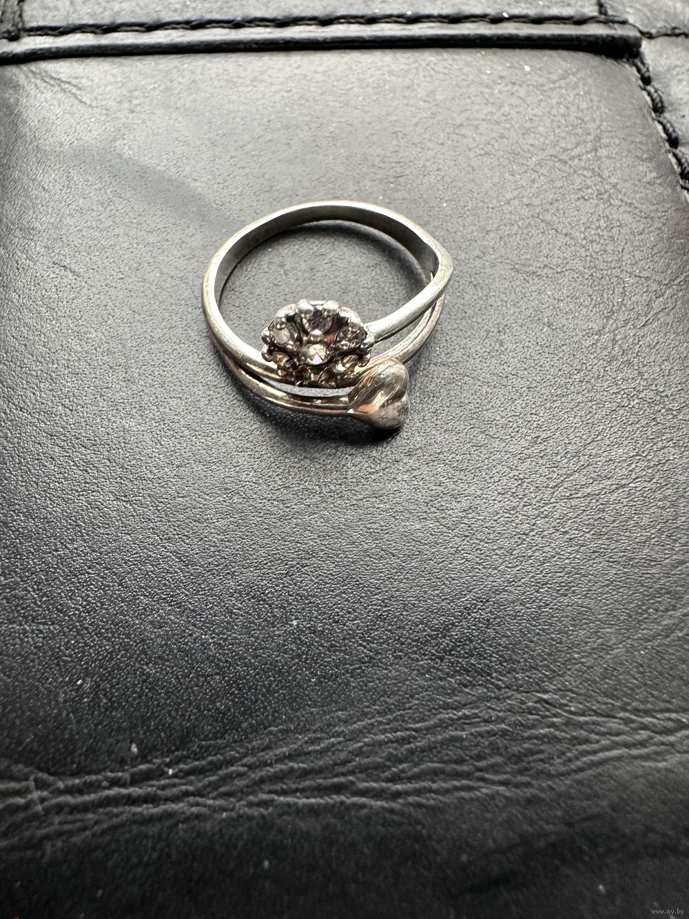 Кольцо. Серебро 925 пробы. Женское сердце и цветок с камнями