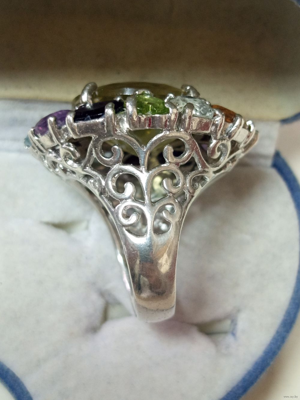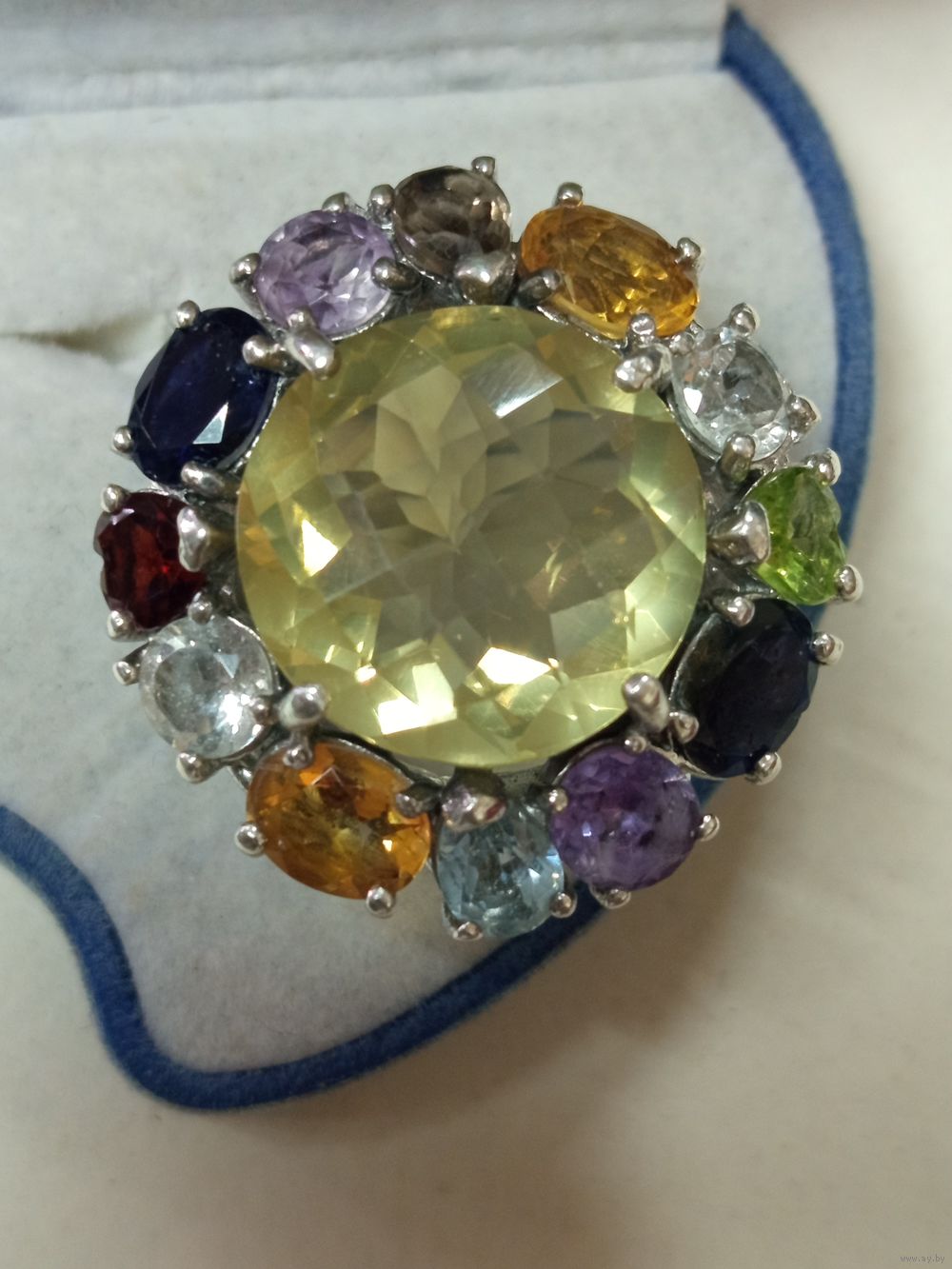 Состояние на фото, почтой отправляю, европочтой,все вопросы до покупки, отправка лота в течение трёх -пяти дней после оплаты лота , центральный камень Цетрин, производство Тайланд,по окружности раухтопаз,гранат и др.