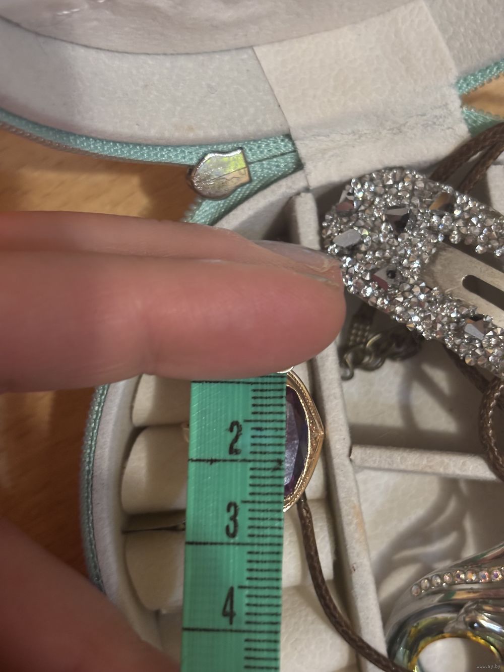 Кольцо практически не носилось, покупалось в конце 70-х. Состояние отличное, в ломбардах не бывало. Досталось по наследству среди подобных ювелирных изделий. Вес указан с камнем, камень александрит (корунд), вес камня примерно 0,5 г.