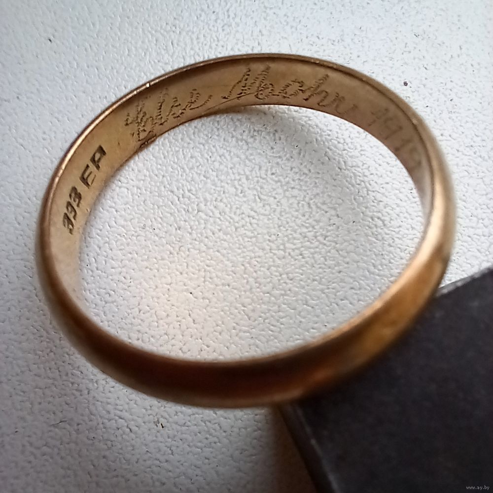 Кольцо золотое обручальное, проба кольца 333 с гравировкой мастера EP.