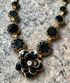 Колье-чокер из пластика и металла золотого тона (с обратной стороны на металле потёртости). Максимальная длина украшения 38см. На цветочке не хватает одного лепестка.