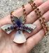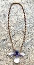 Редкое винтажное (1970-е гг.) чешское колье. Основа колье выполнена из латуни с позолотой, вставки кристаллы розово-фиолетового цвета. Длина колье 41см., цветок 4,5х6см., покрыт эмалью. Состояние хорошее.