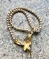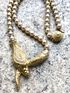 Колье «Змея-уроборос» (змея, кусающая себя за хвост) известной чешкой марки Jablonex. Изготовлено из стеклянных бусин, имитирующих жемчуг и несъёмной подвески в виде змеи из бижутерного сплава золотого тона с вкраплениями кристаллов. Длина украшения 46см., диаметр бусины ~0,7см. Был ремонт одного крепления возле подвески (в носке не заметно, учтено в цене). Не маркировано.