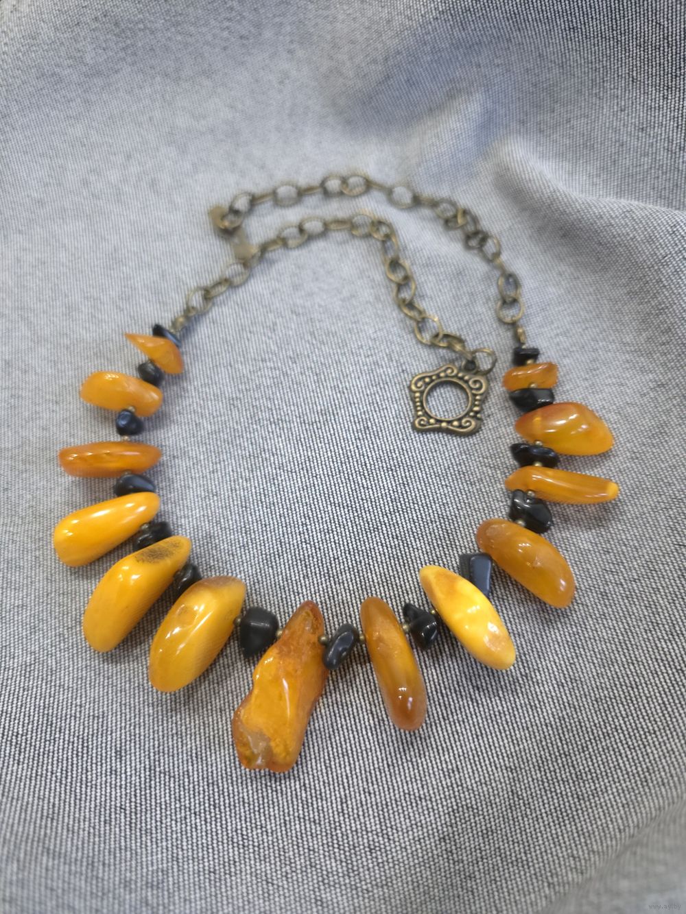 Колье, бусы, ожерелье с натуральным молочным балтийским янтарем и черным натуральным ониксом.