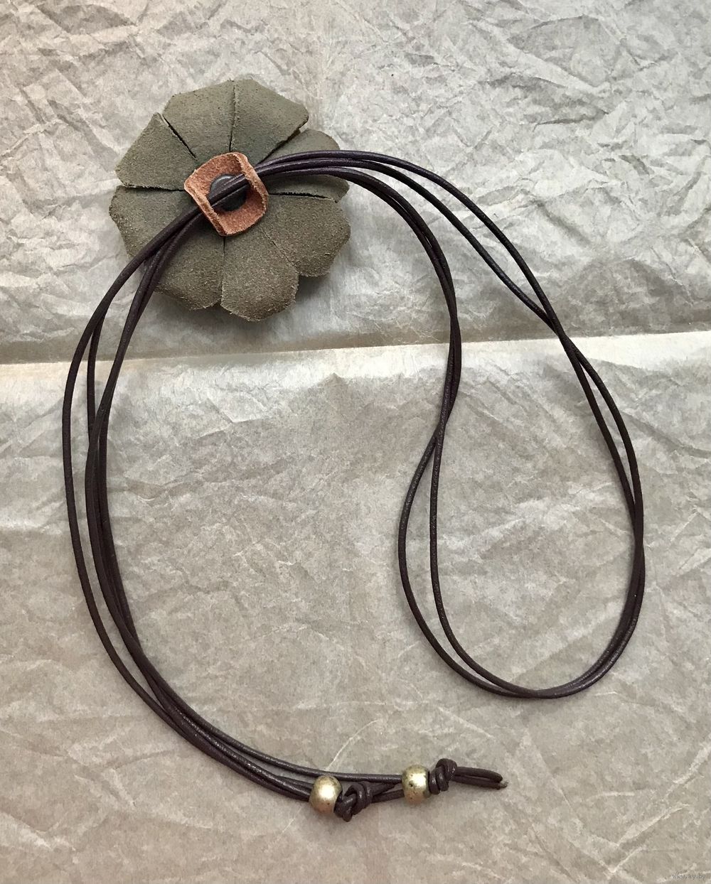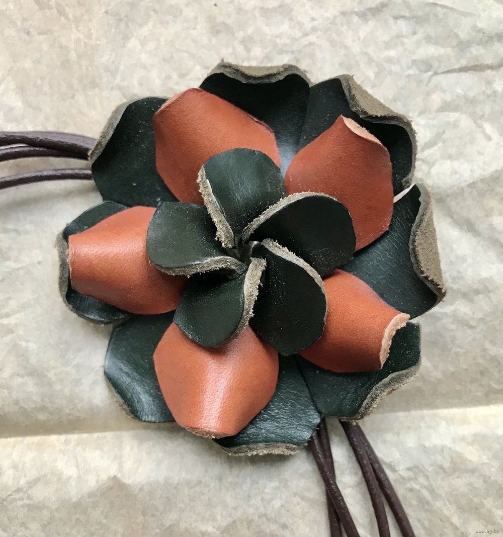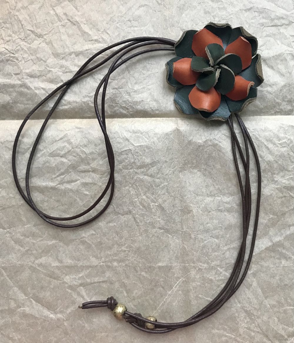 Колье из натуральной кожи. Ручная работа. Диаметр цветка 6,5см., длина шнурка 90см.(можно регулировать). Состояние хорошее.