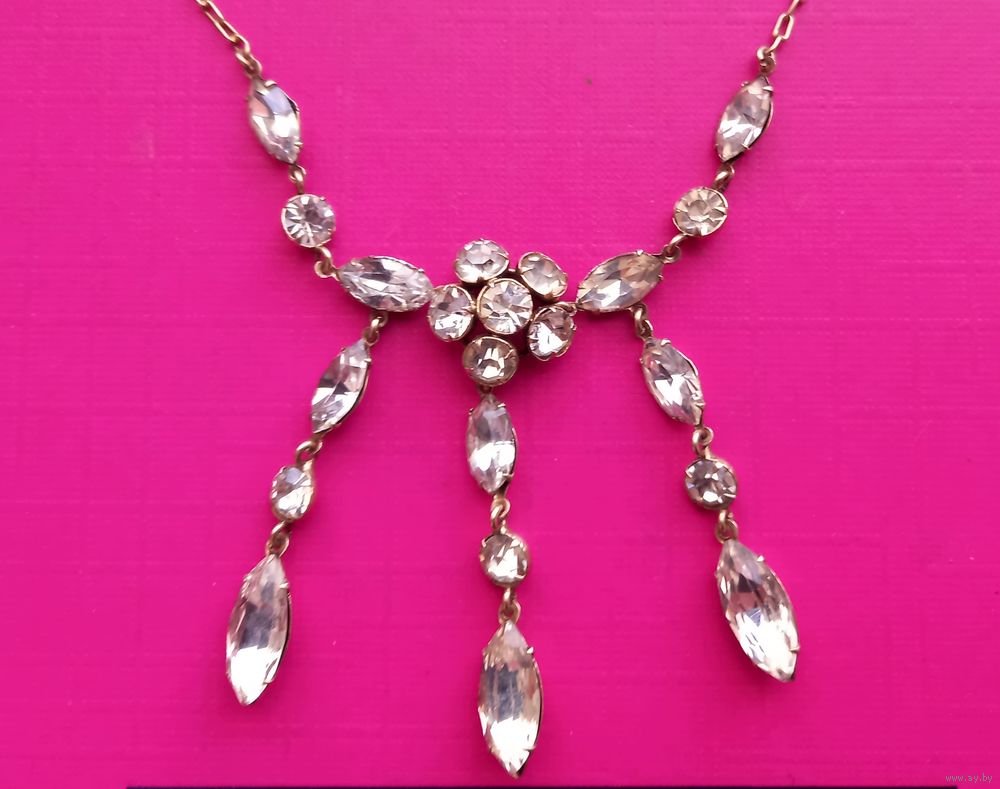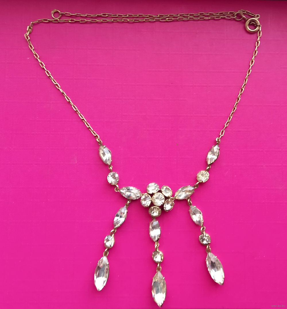 Колье Горный хрусталь. Серебро СССР 875 проба звезда. Позолота