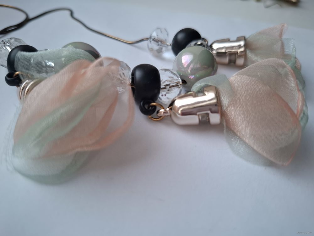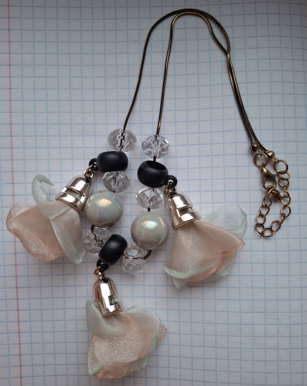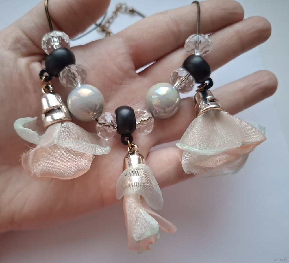 Колье Нежность. Розы. Гипюр. Стеклянные шарики