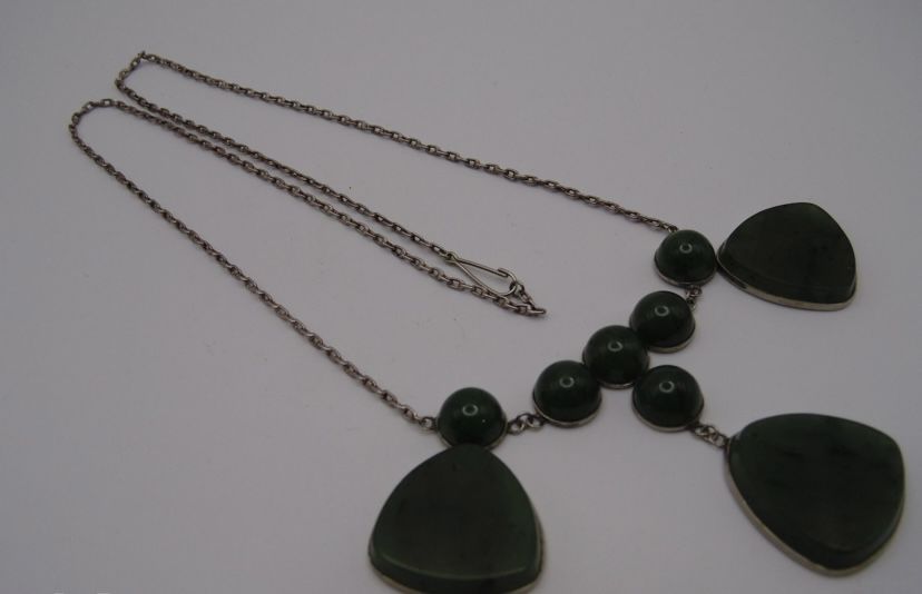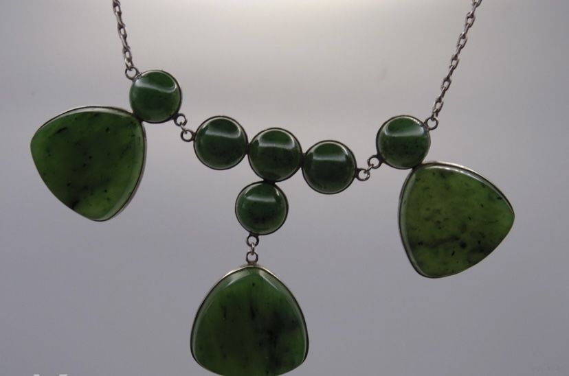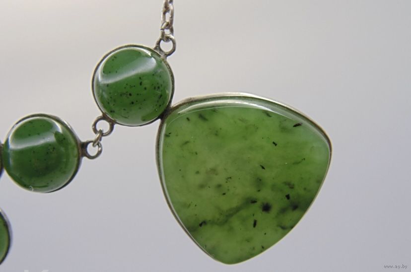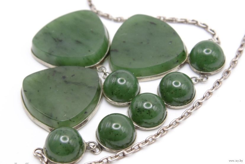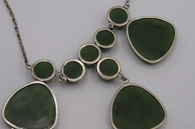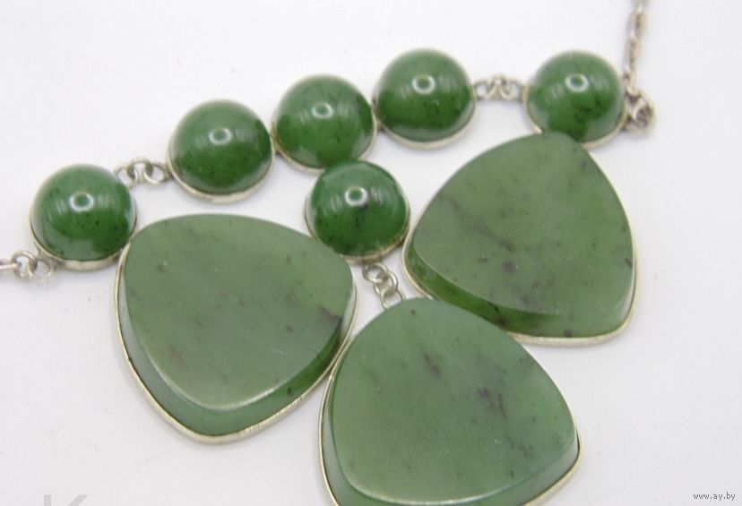 Очень красивое колье. Металл мельхиор. Натуральный нефрит.