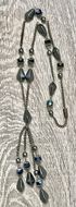Винтажный чешский сотуар. Бусины из стекла (на серых есть незначительные потёртости покрытия), цепочка из латуни с серебрением. Длина цепочки 56см., длина висюлек 12см.