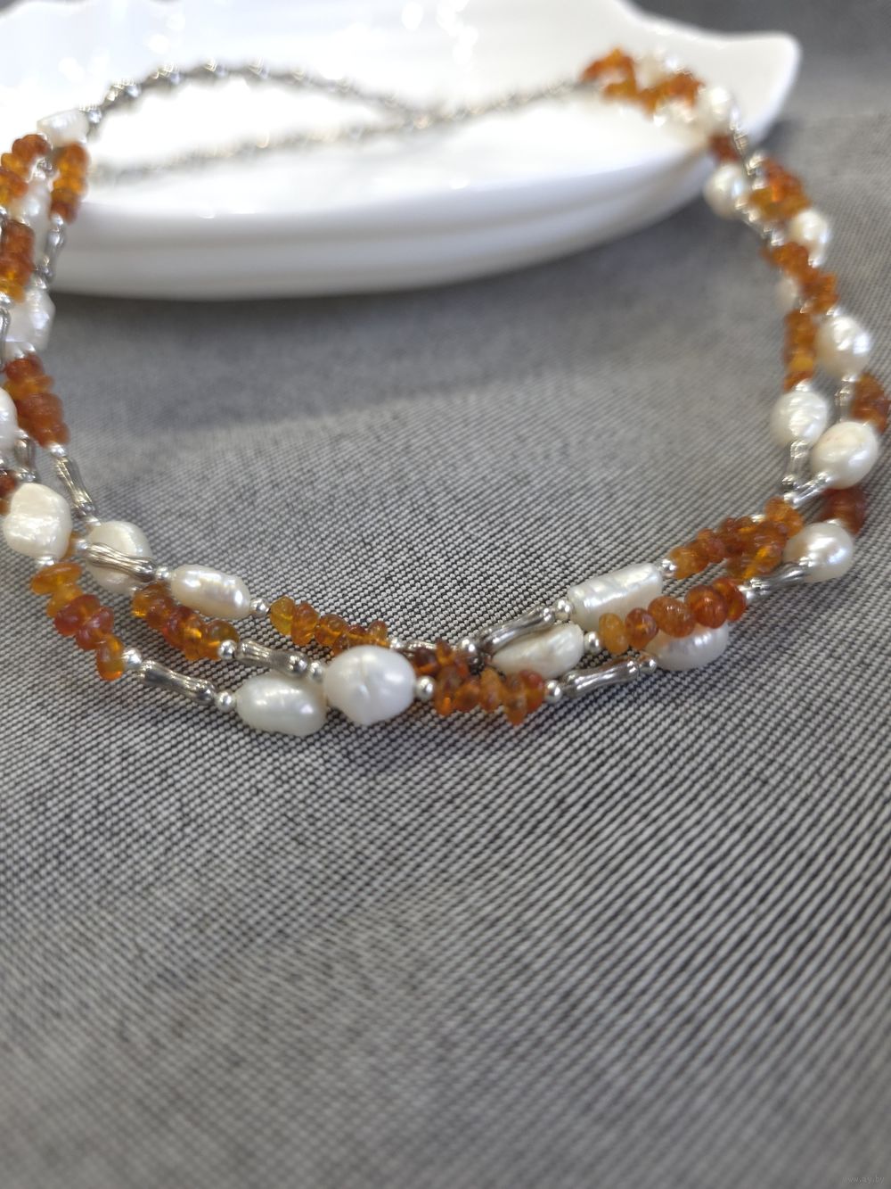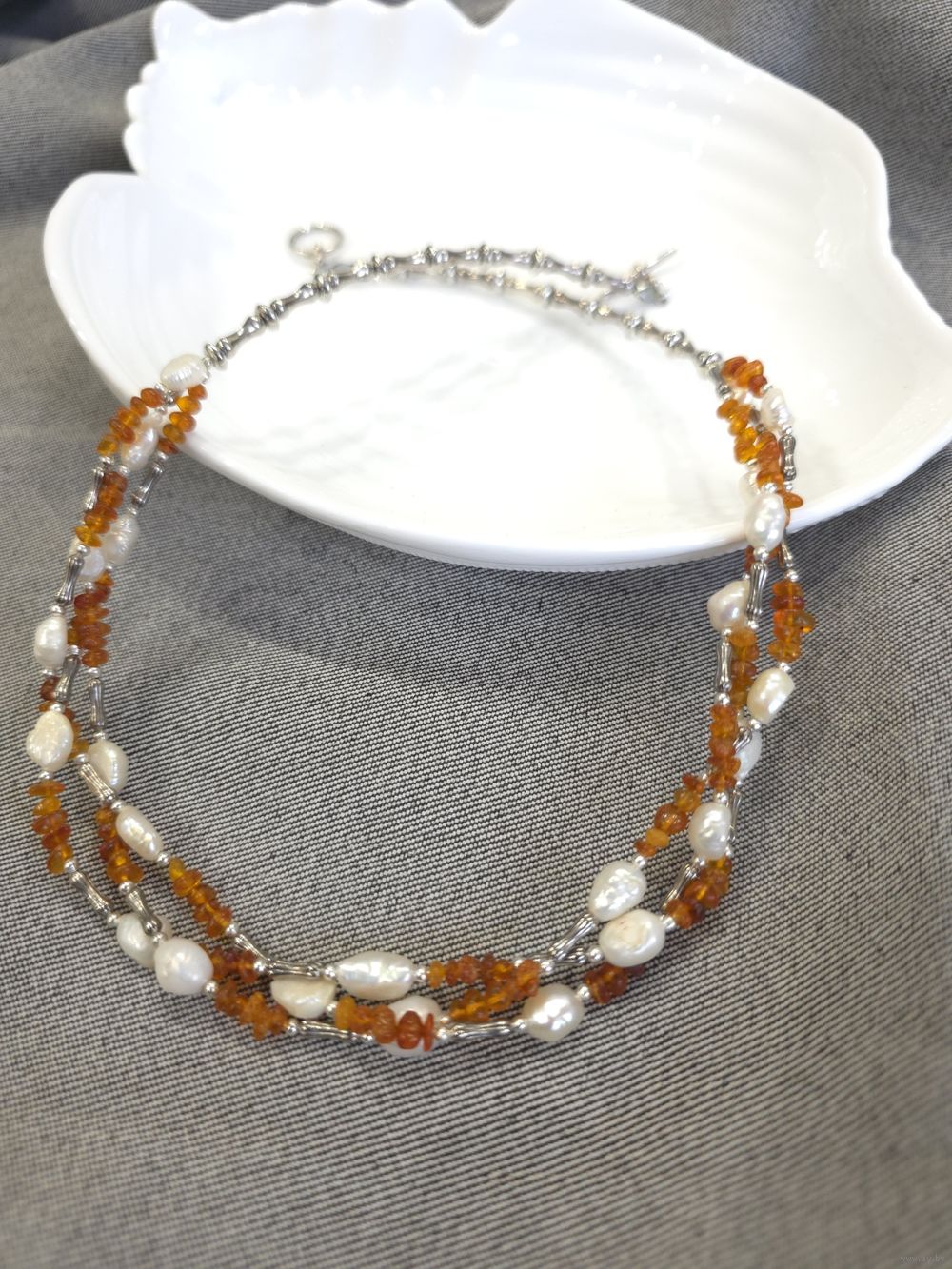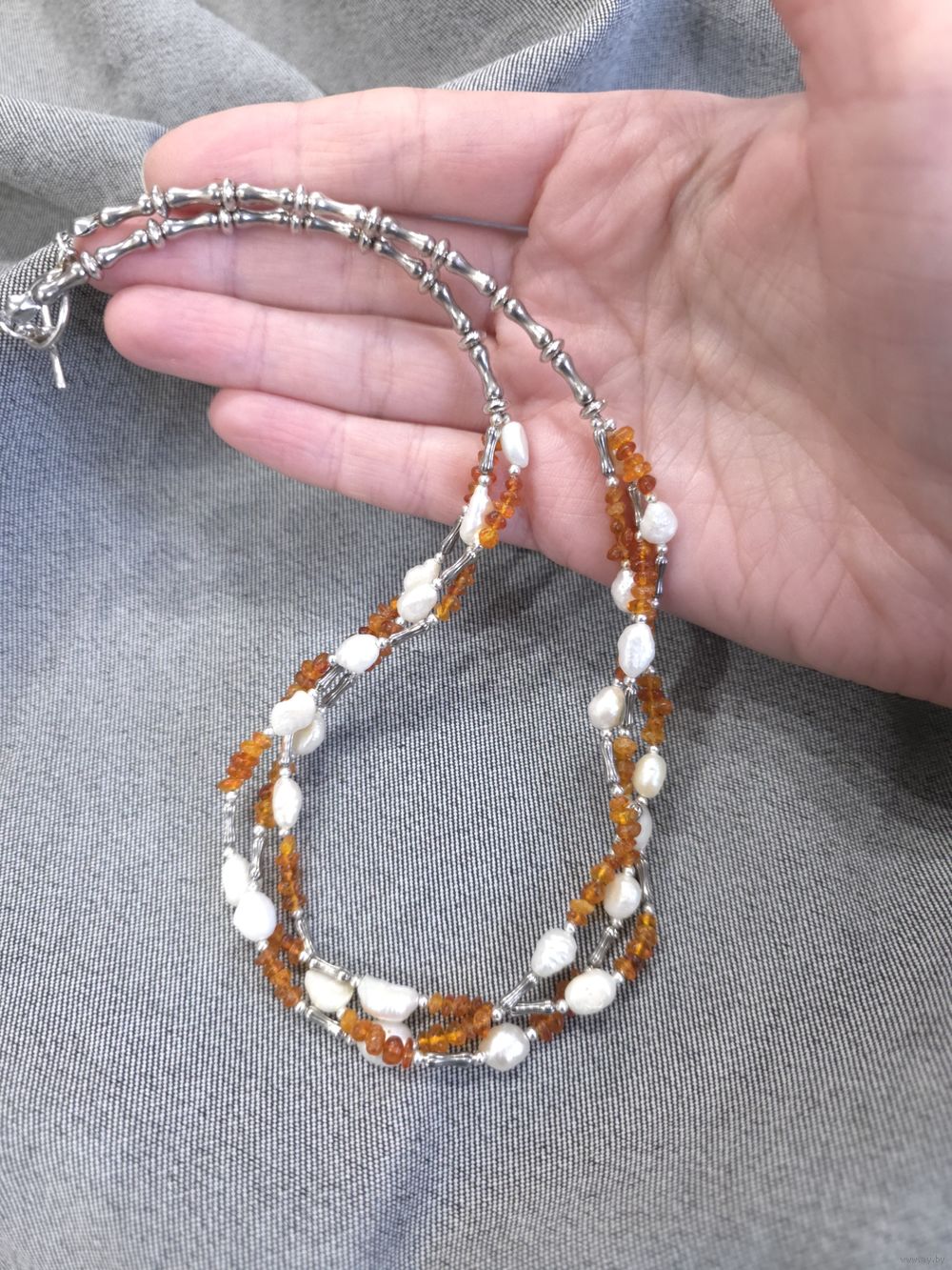 Колье/бусы выполнены из натурального винтажного жемчуга в дополнении с натуральным янтарем.