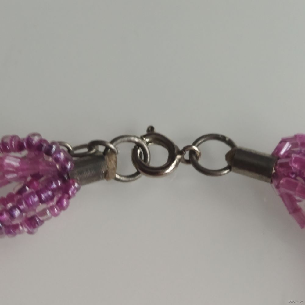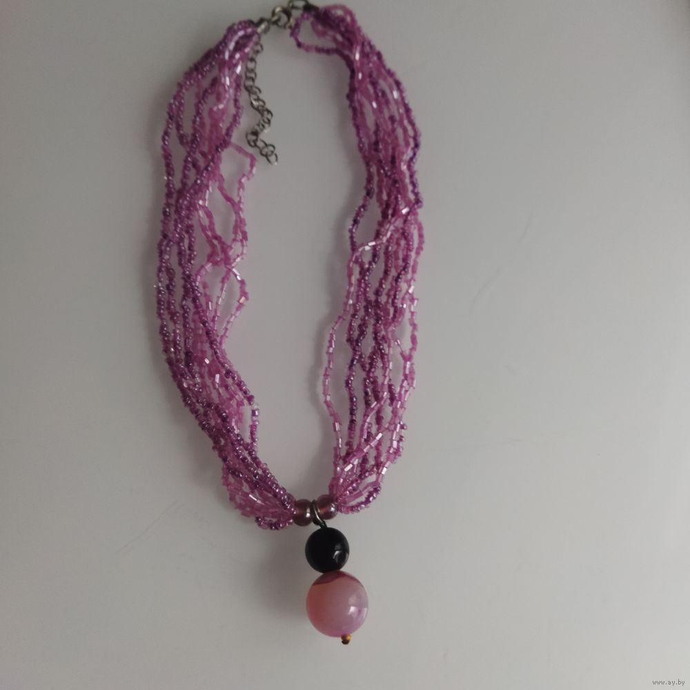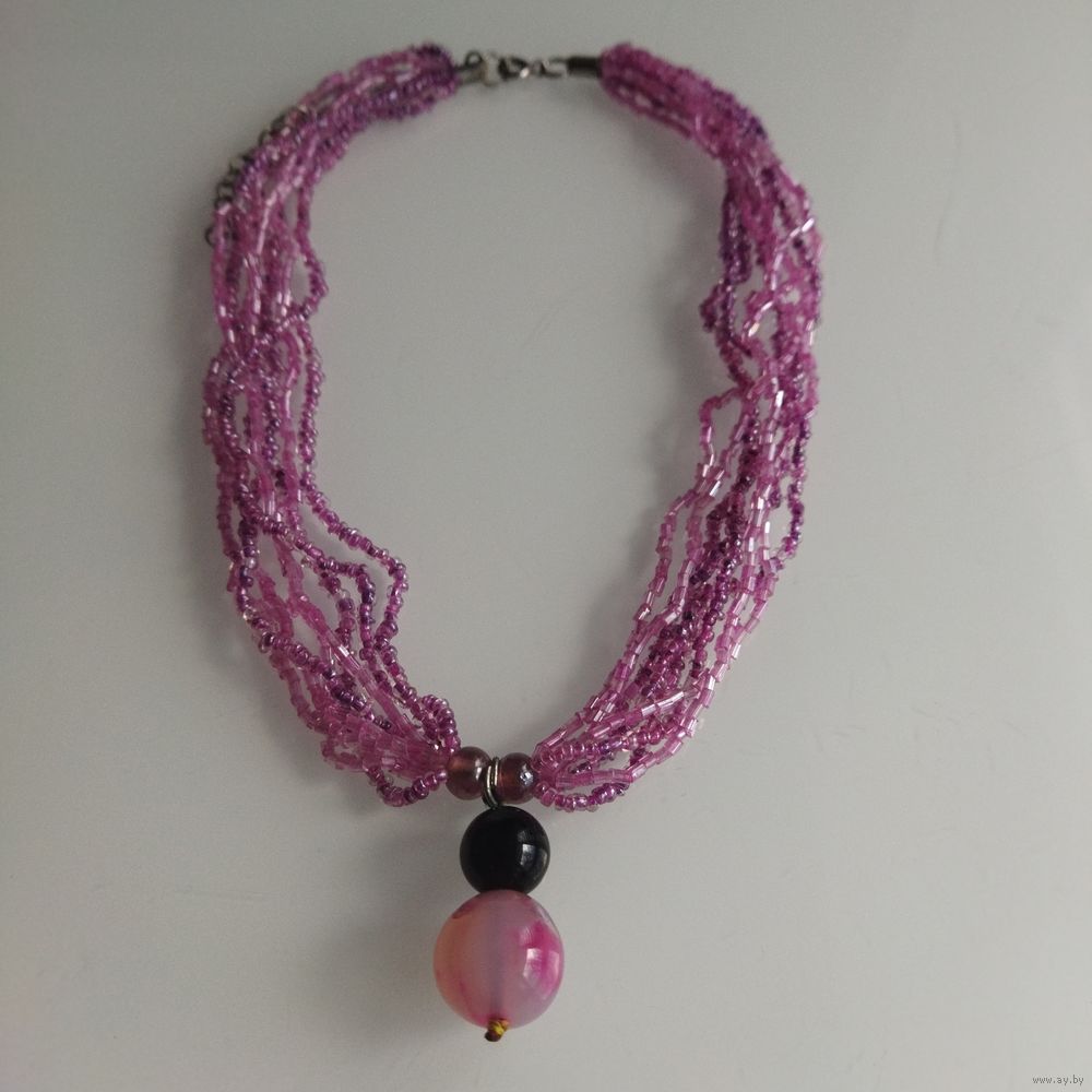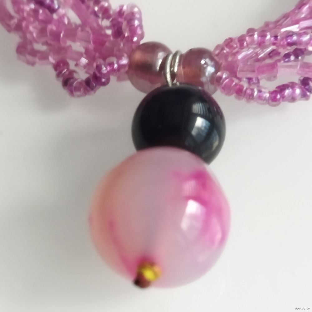 Восемь рядочков нежного с перламутром бисера. Крупная бусина розового агата.