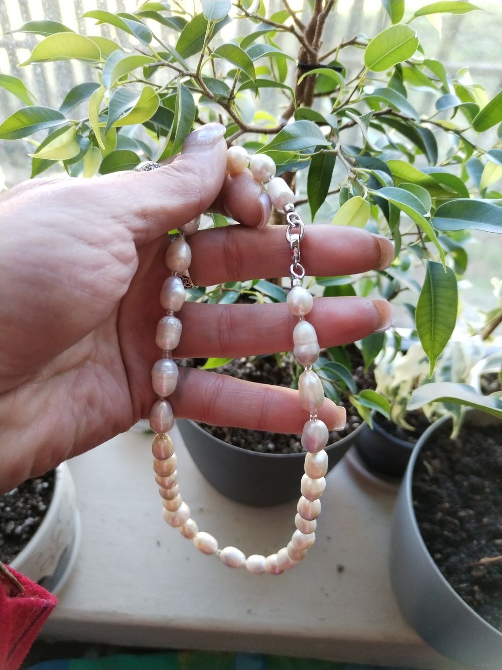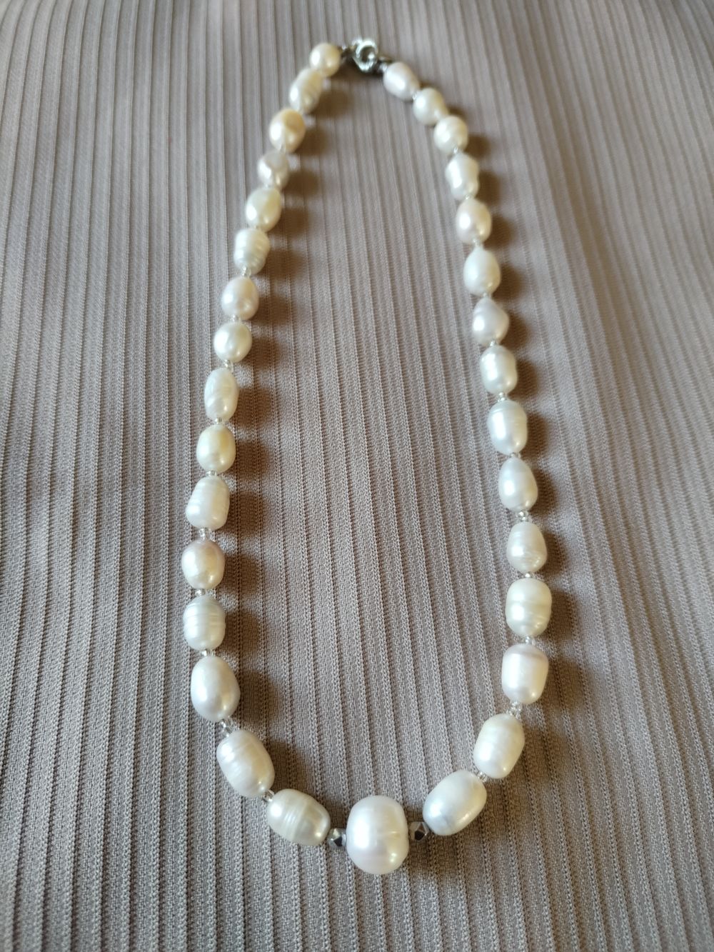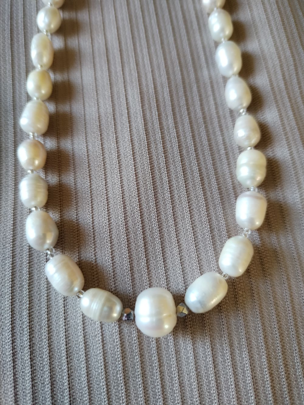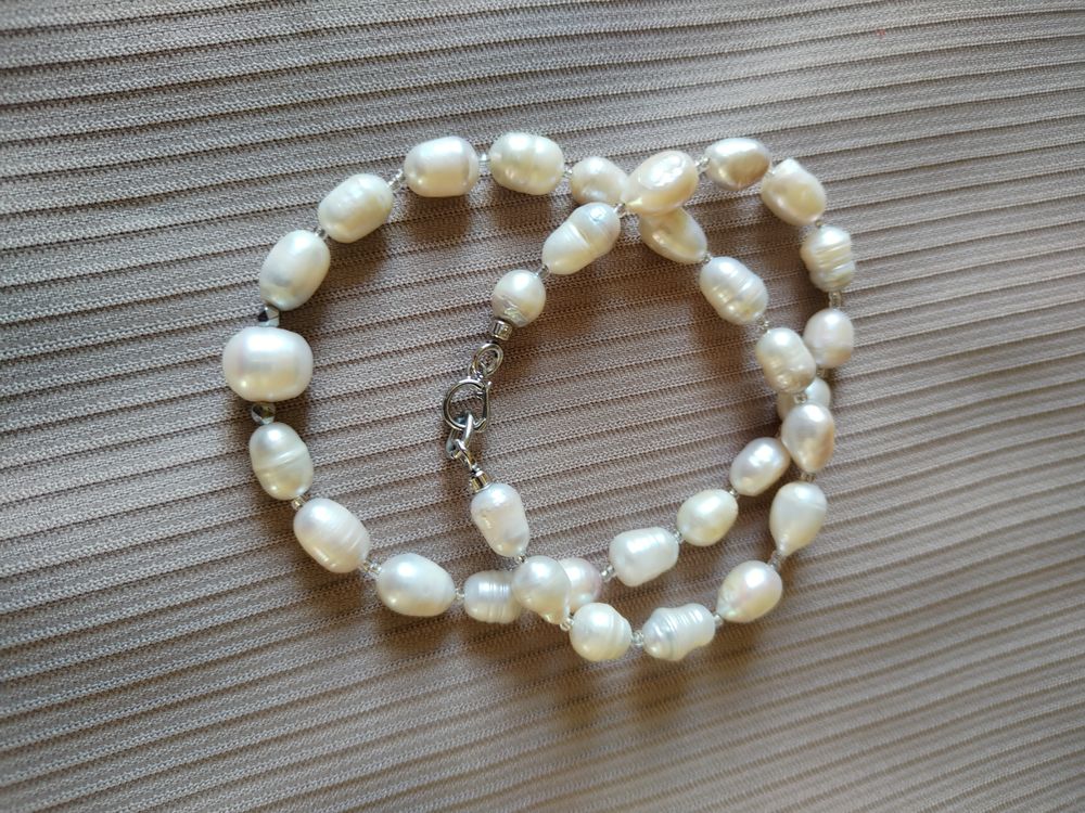 Колье 40 см натуральный крупный жемчуг 9-10 мм с отборной центральной жемчужиной и удобной застежкой