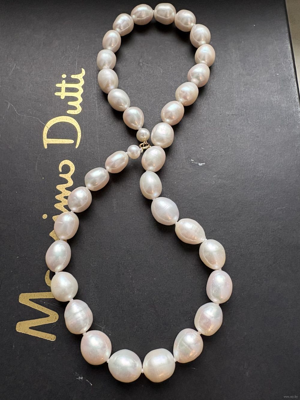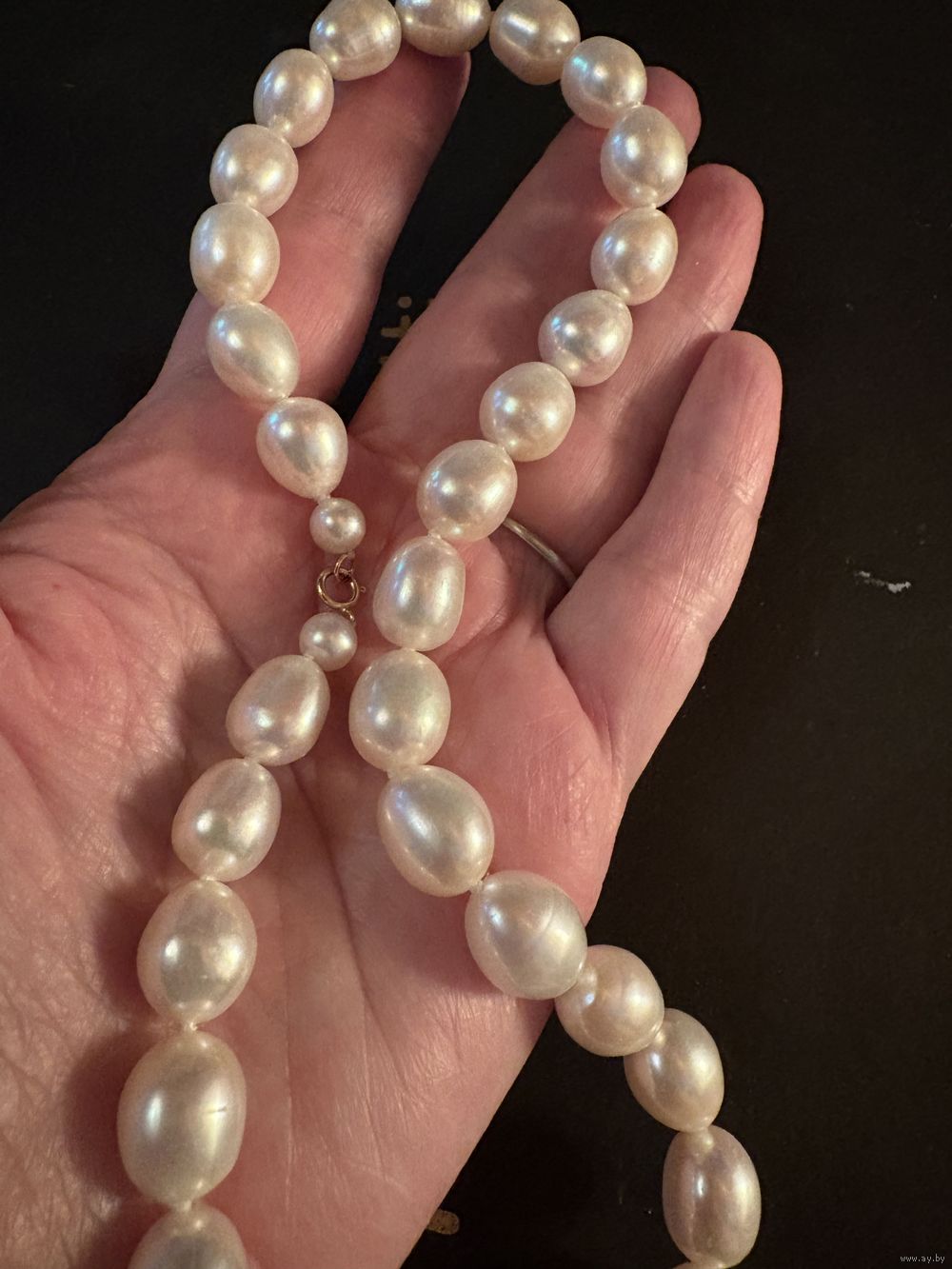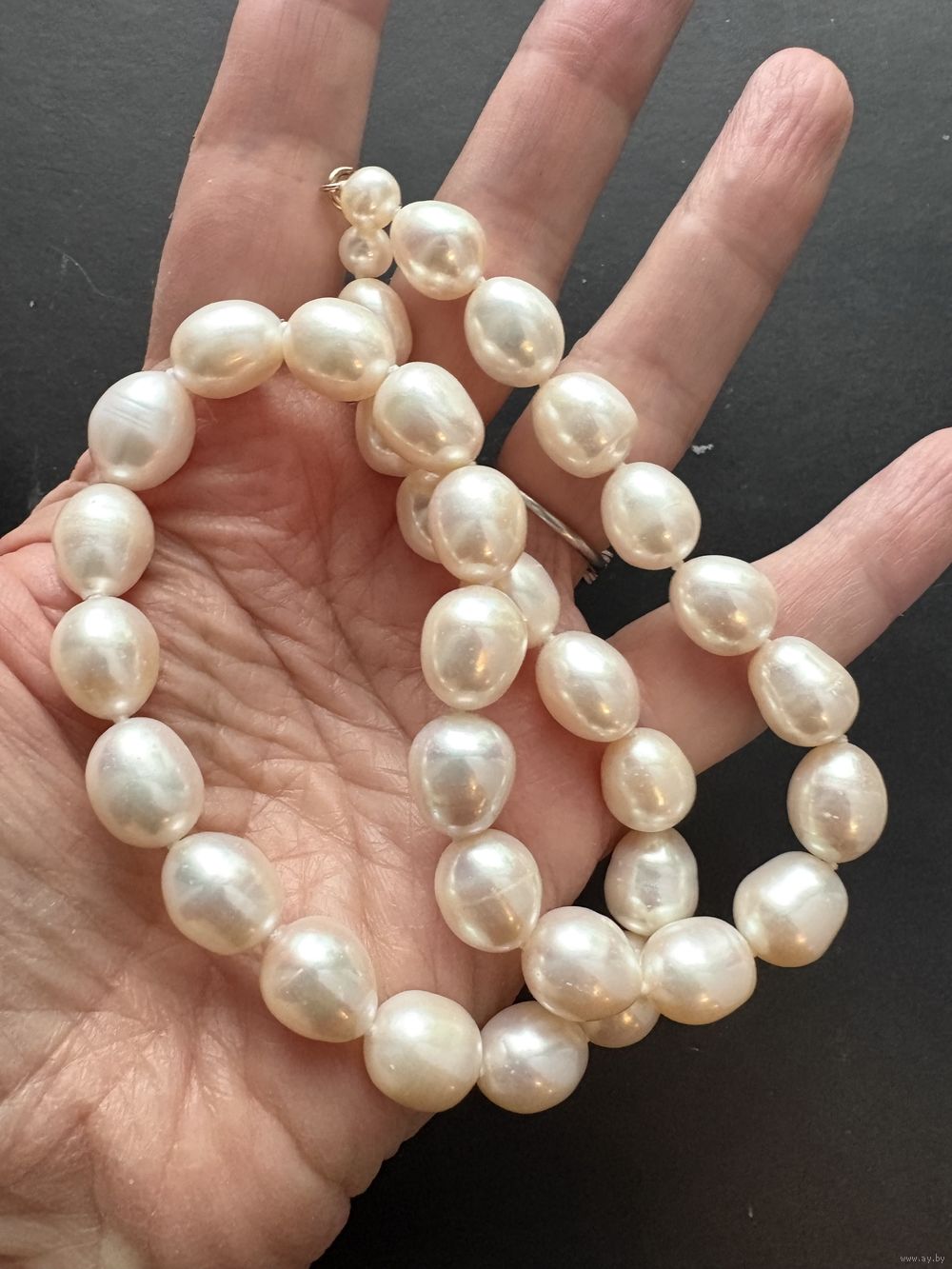 Красивое колье , натуральный крупный жемчуг 12-13 мм, красивый перелив, длина 44 см , застежка золото 585 проба, стоит клеймо 14 k, новое, не носила, стоило дорого