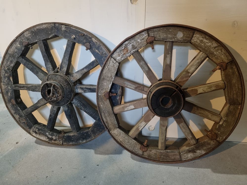 Колеса для телеги, деревянные, обод металл, диаметр примерно 64 см.