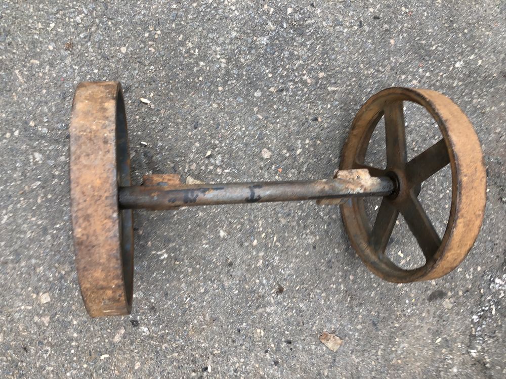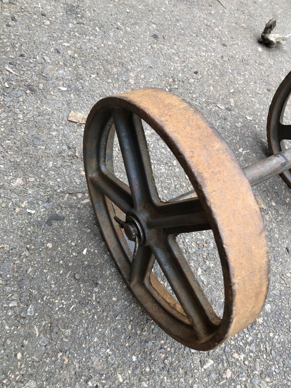 Отличная основа для вашего проекта. Колеса старинные. В отличном состоянии. Цена указана за два колеса. Ось в подарок. Могу выслать.