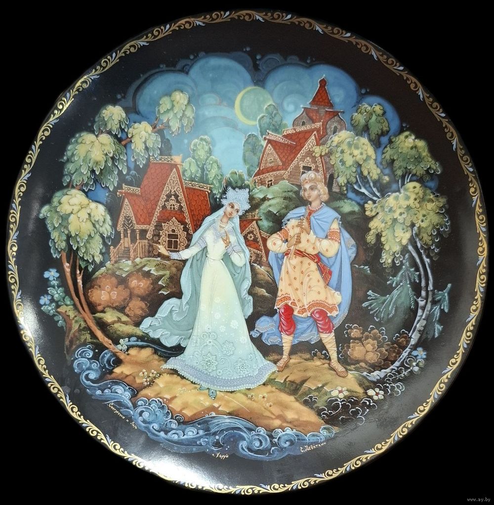 Коллекционная, декоративная тарелка - Холуйская миниматюра. Позолота, детали исполнения. Песня любви