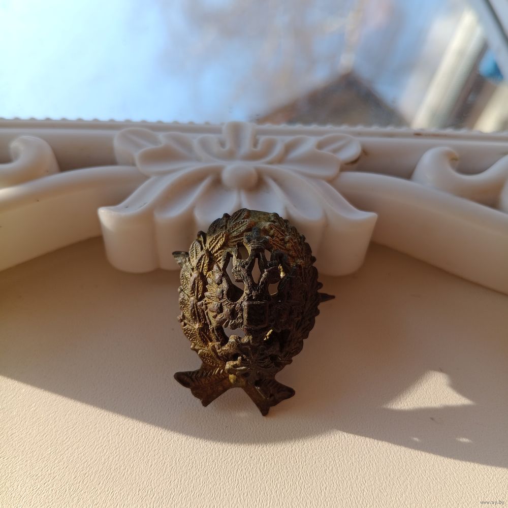 Коллекционная вещь в редком сохране в родной вековой патине.На двухглавом орле видны все мелкие гербы и перья.Венок, петля и крепления оригинал.При желании легко чиститься до позолоты.Вы покупаете то, что на фото, смотрите и принимайте взвешенное решение о приобретении.Обмен и возврат отсутствует.Есть предложения, вопросы или нужна доп информация,фото-пишите.Оплата лота на карту в течение 3 дней с даты окончания торгов. Отправка лота в течение 3 дней с даты оплаты. Отправка по тарифам Белпочты или Европочты. На связь выходит покупатель на почту или Вайбер. Наложенным платежом не отправляю.Смотрите другие мои лоты, которые смогли бы дополнить вашу личную коллекцию.