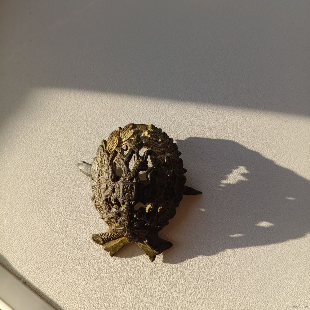 Коллекционная вещь в редком сохране в родной вековой патине.На двухглавом орле видны все мелкие гербы и перья.Венок, петля и крепления оригинал.При желании легко чиститься до позолоты.Вы покупаете то, что на фото, смотрите и принимайте взвешенное решение о приобретении.Обмен и возврат отсутствует.Есть предложения, вопросы или нужна доп информация,фото-пишите.Оплата лота на карту в течение 3 дней с даты окончания торгов. Отправка лота в течение 3 дней с даты оплаты. Отправка по тарифам Белпочты или Европочты. На связь выходит покупатель на почту или Вайбер. Наложенным платежом не отправляю.Смотрите другие мои лоты, которые смогли бы дополнить вашу личную коллекцию.