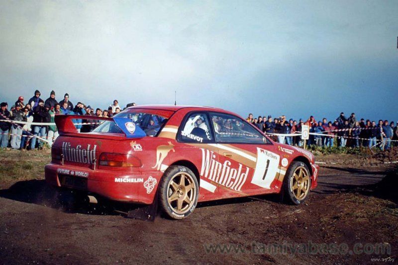 OKM64 Subaru Impreza WRC первого поколения в красной ливрее Winfield