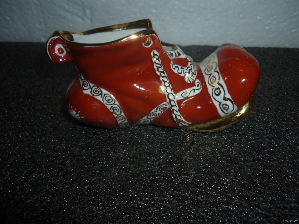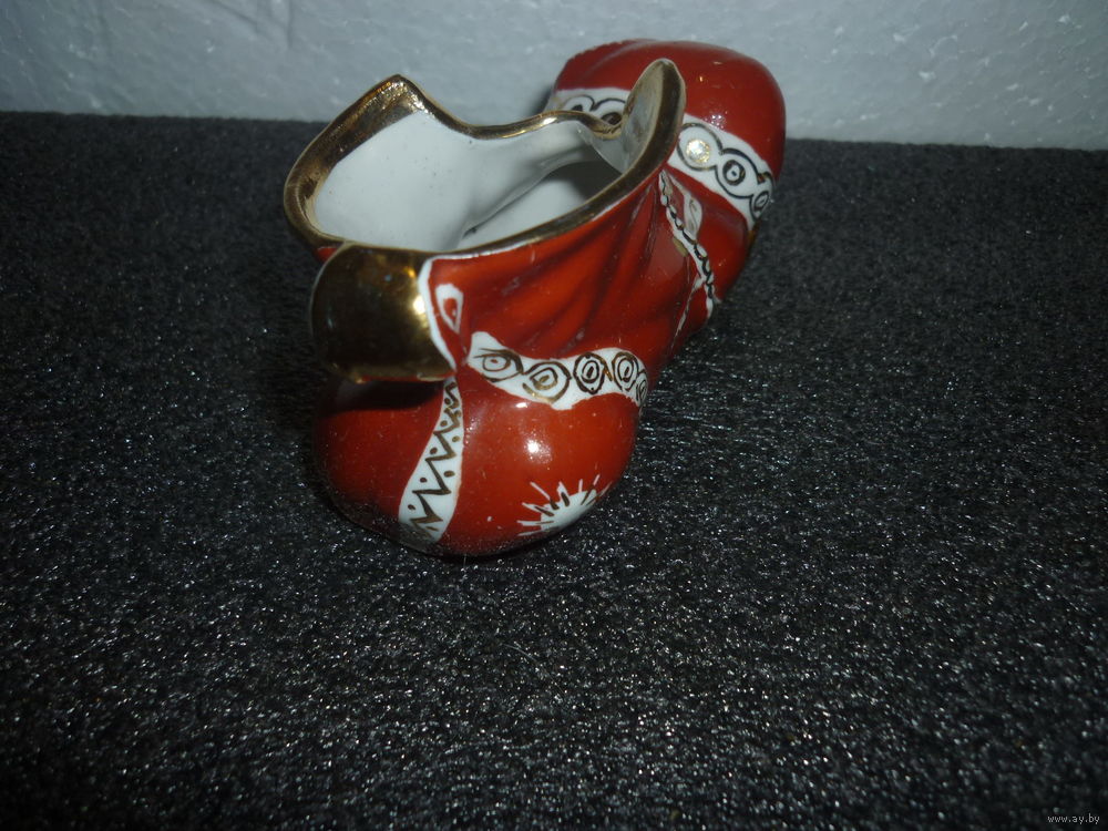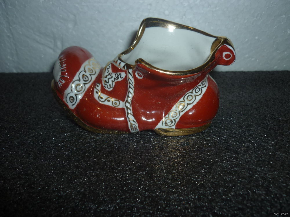 Коллекционная Пепельница. СТАРЫЙ БАШМАК. Ручная роспись. Фарфор. Красная