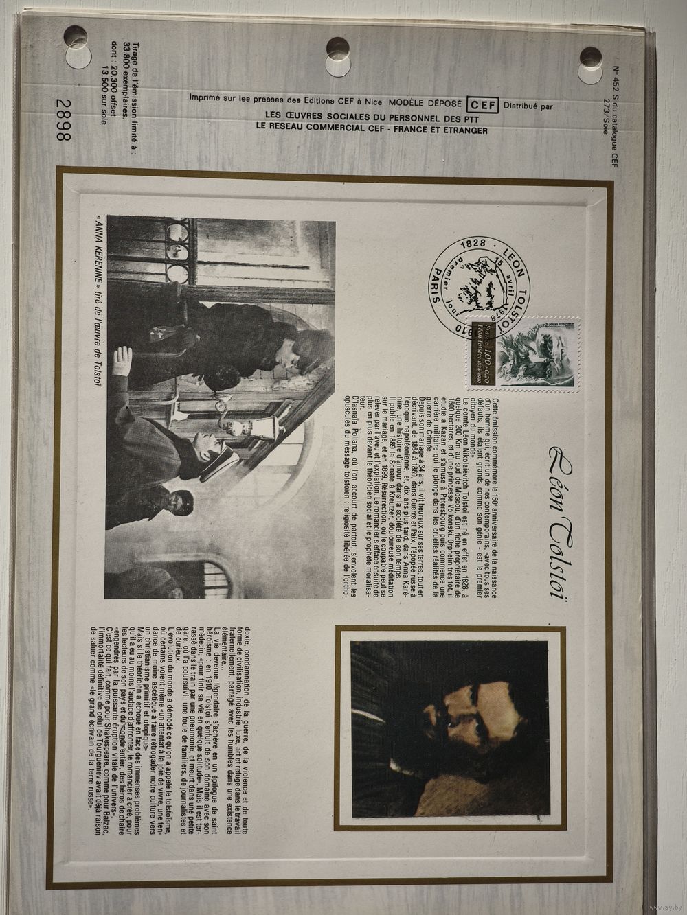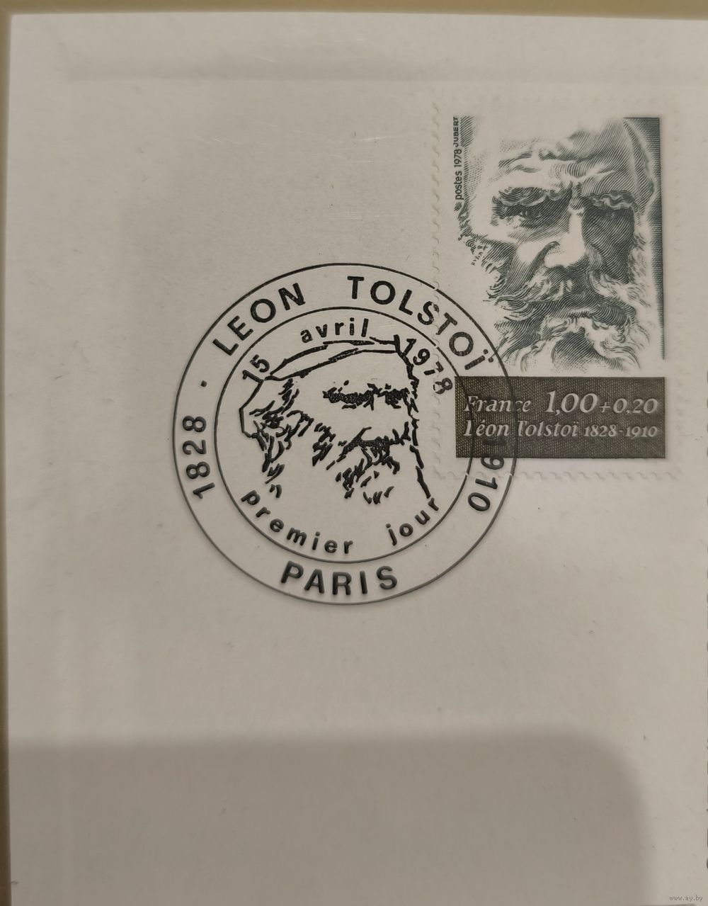 Французская благотворительная почтовая марка, посвящённая классику мировой литературы Льву Николаевичу Толстому (1828–1910).
