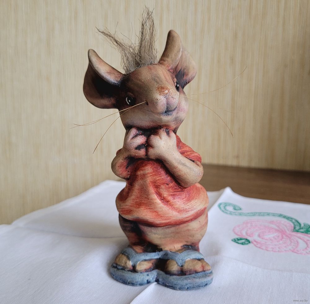 Коллекционная статуэтка "Мышь", керамика, ручная работа. Высота 13 см.