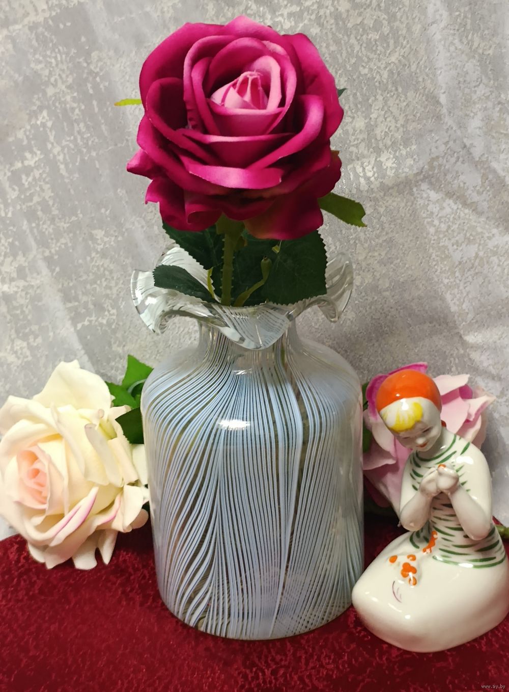 Очень красивая, нежная ваза.Анатолий Федорков.Неман 50-60 гг.Сульфидное стекло, гутная техника.Высота 18 см. Станет изысканным подарком на любой праздник, да и в своем доме приятно иметь такое изящество.Высылаю почтой и европочтой. Упаковка надёжная.