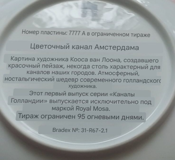 Тарелка сохранилась в прекрасном состоянии, без сколов и трещин. Станет интересным элементом декора интерьера или частью коллекции. Размеры 19 см . Настенная. Амстердам